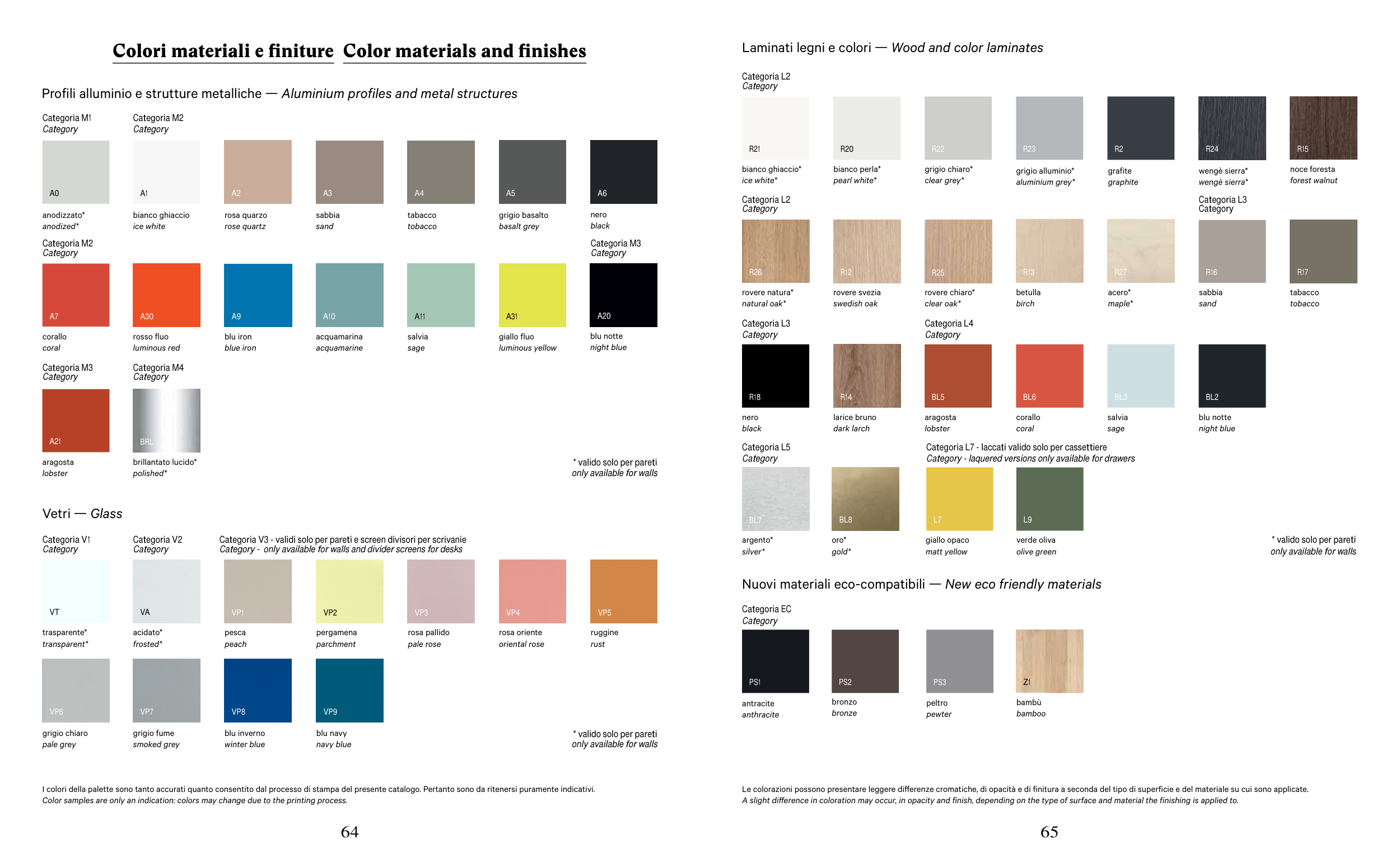 Colori materiali e finiture Color materials and finishes