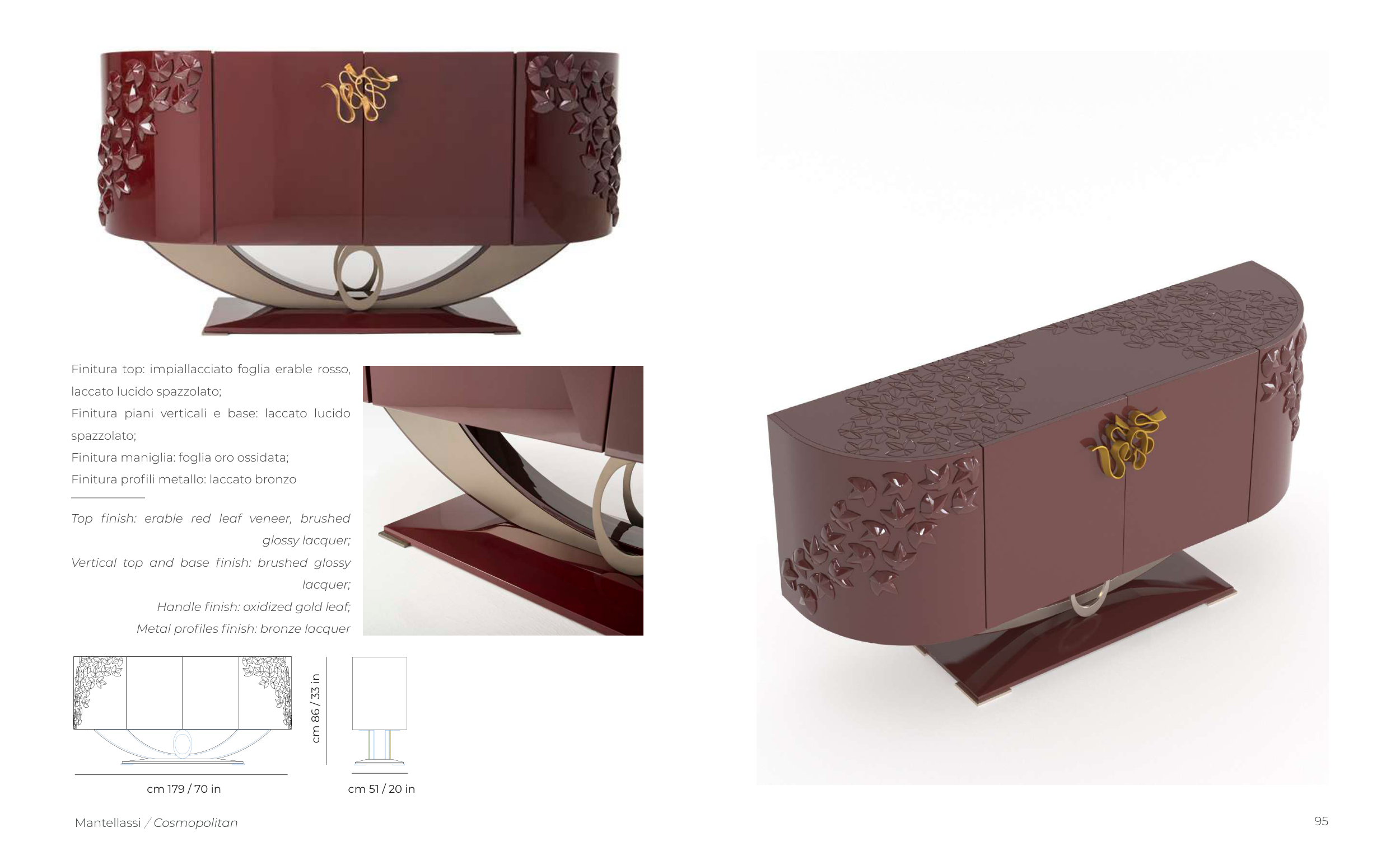 Finitura maniglia: foglia oro ossidata;