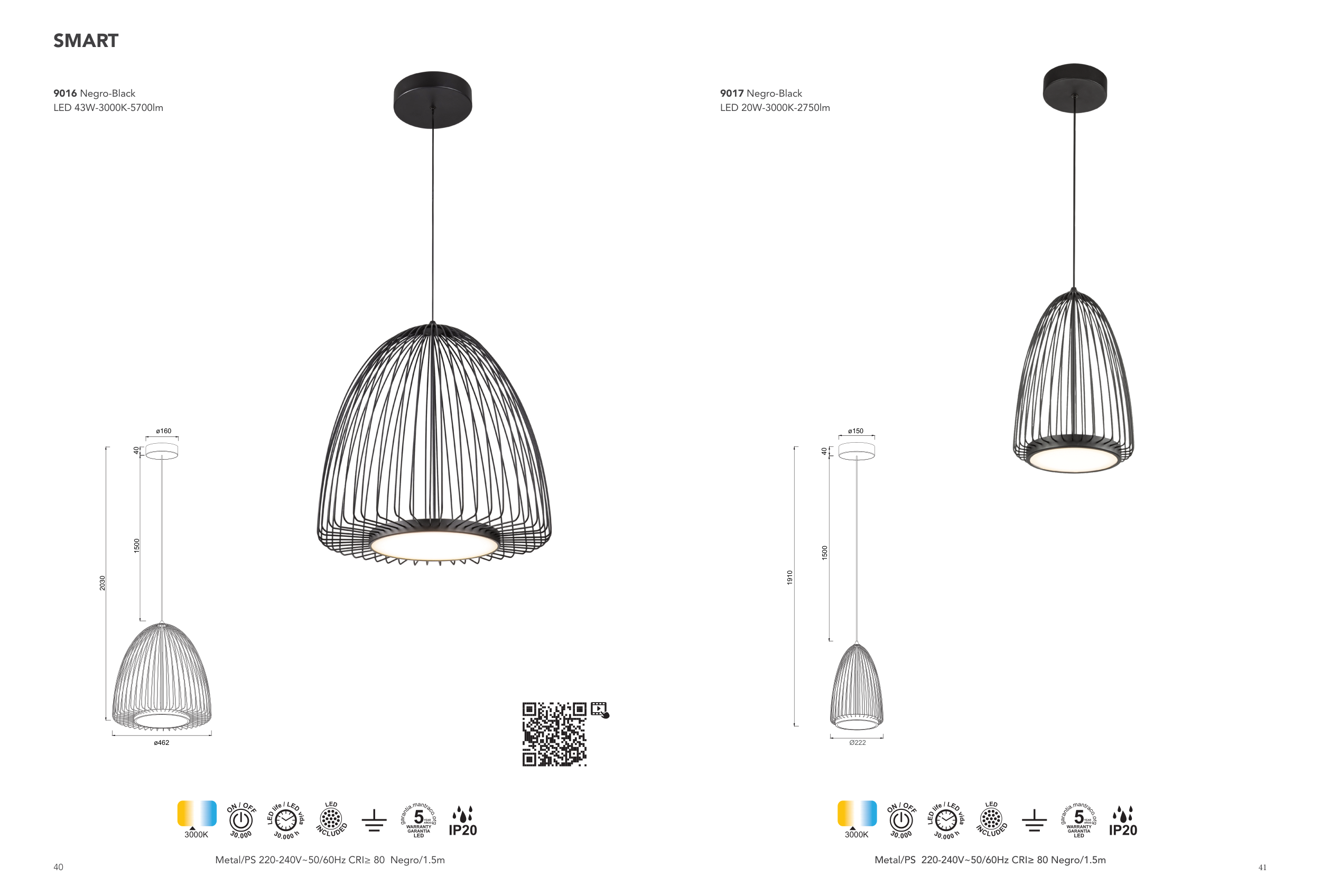 Metal/PS 220-240V~50/60Hz CRI≥ 80 Negro/1.5m