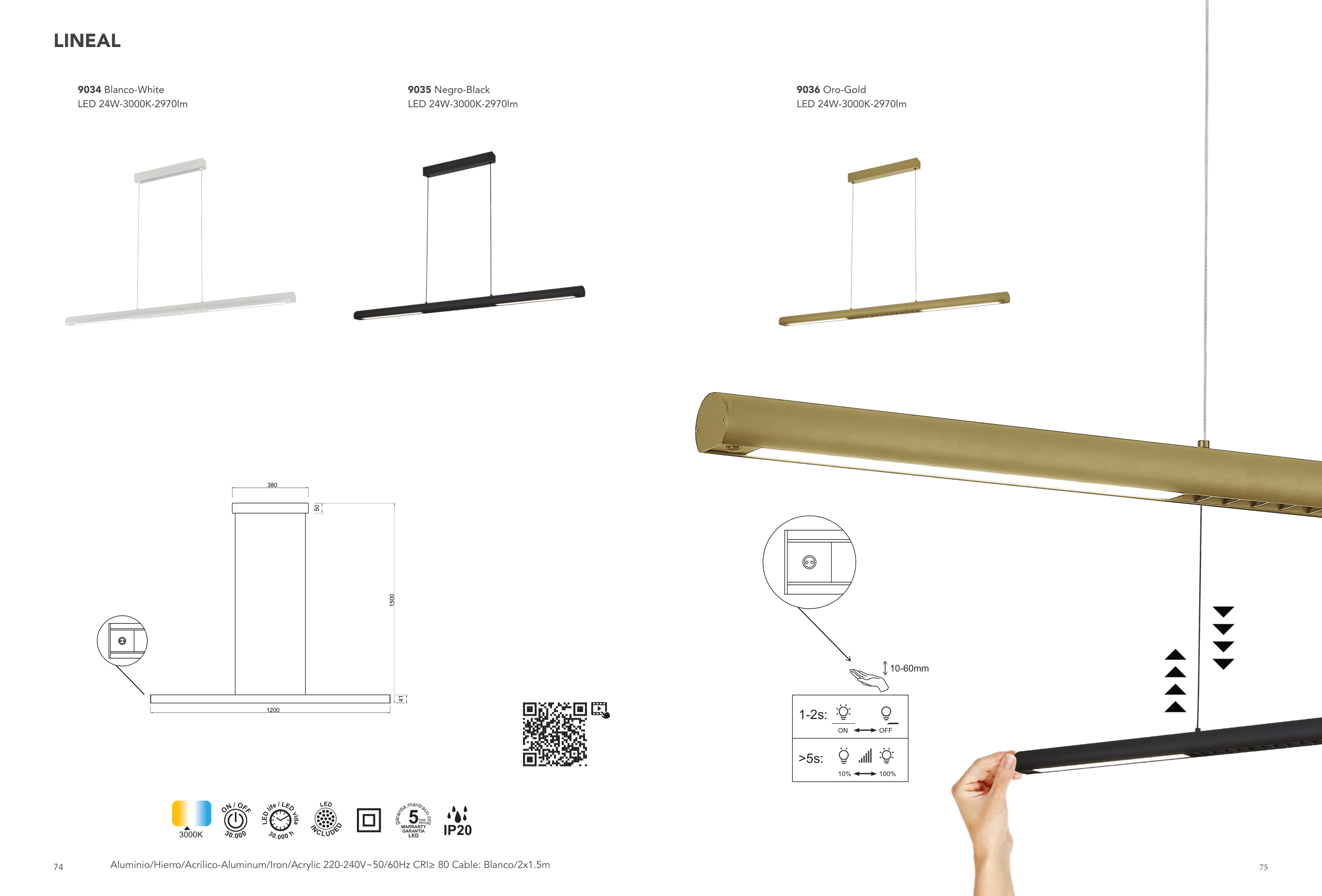 Aluminio/Hierro/Acrílico-Aluminum/Iron/Acrylic 220-240V~50/60Hz CRI≥ 80 Cable: Blanco/2x1.5m