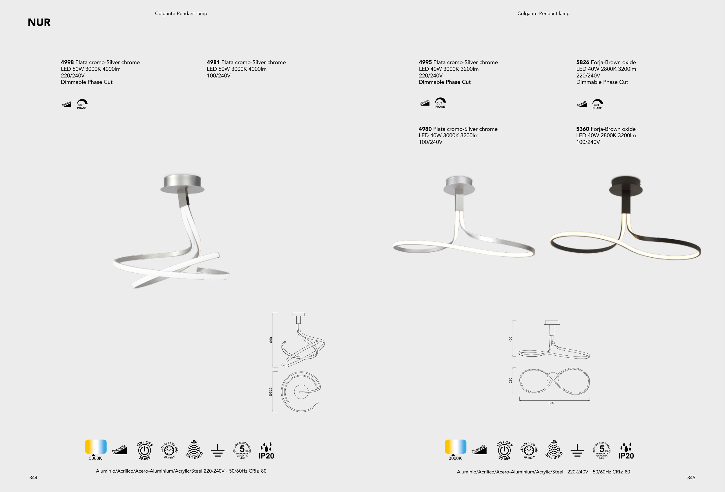 Aluminio/Acrílico/Acero-Aluminium/Acrylic/Steel 220-240V~ 50/60Hz CRI≥ 80