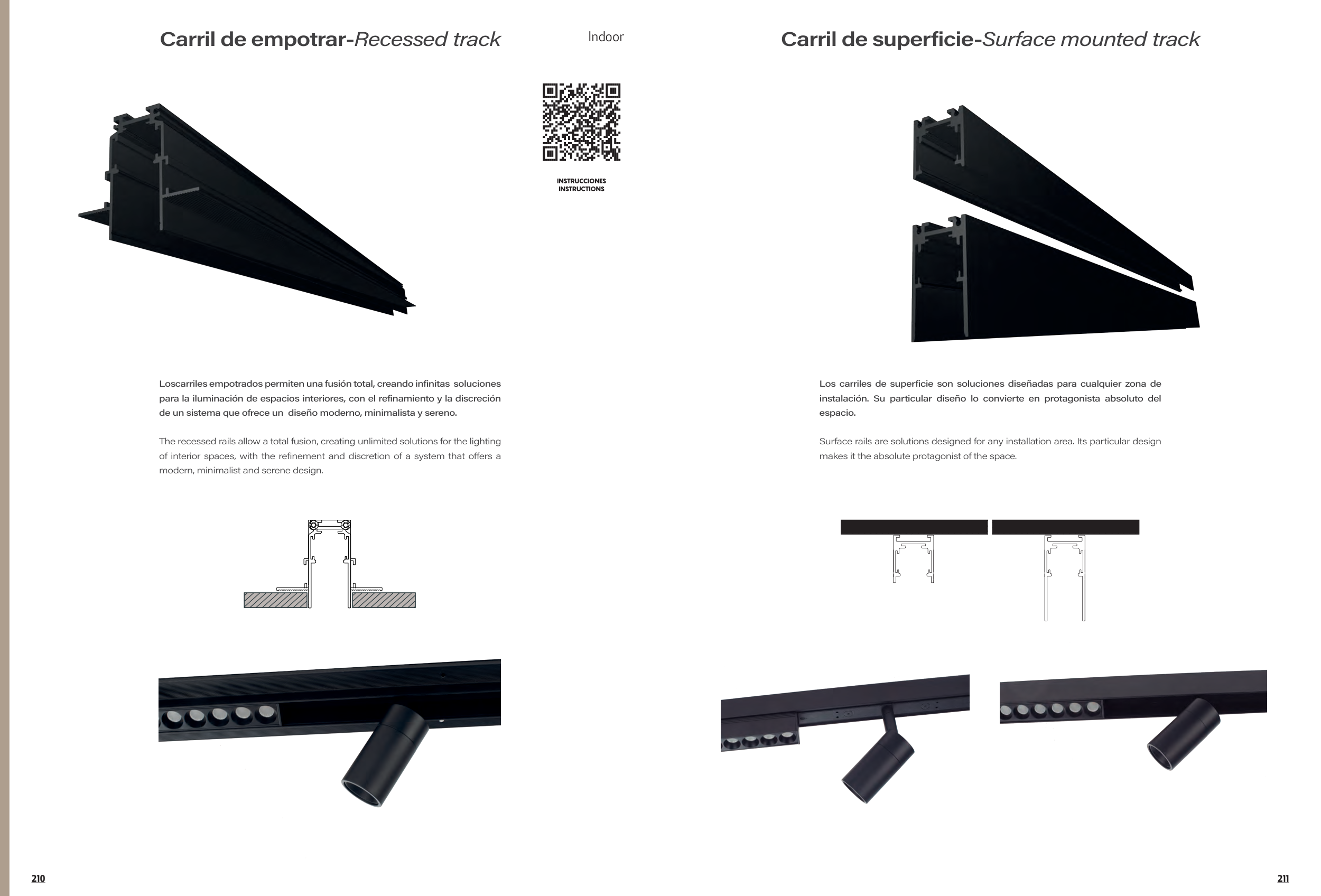 The recessed rails allow a total fusion, creating unlimited solutions for the lighting