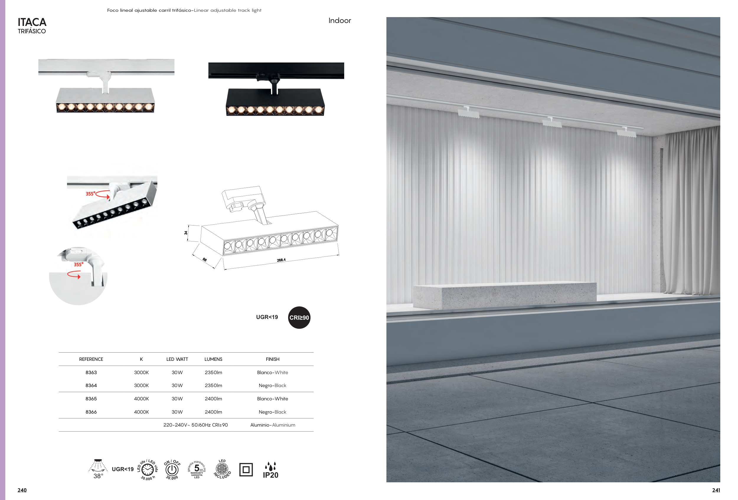Foco lineal ajustable carril trifásico-Linear adjustable track light