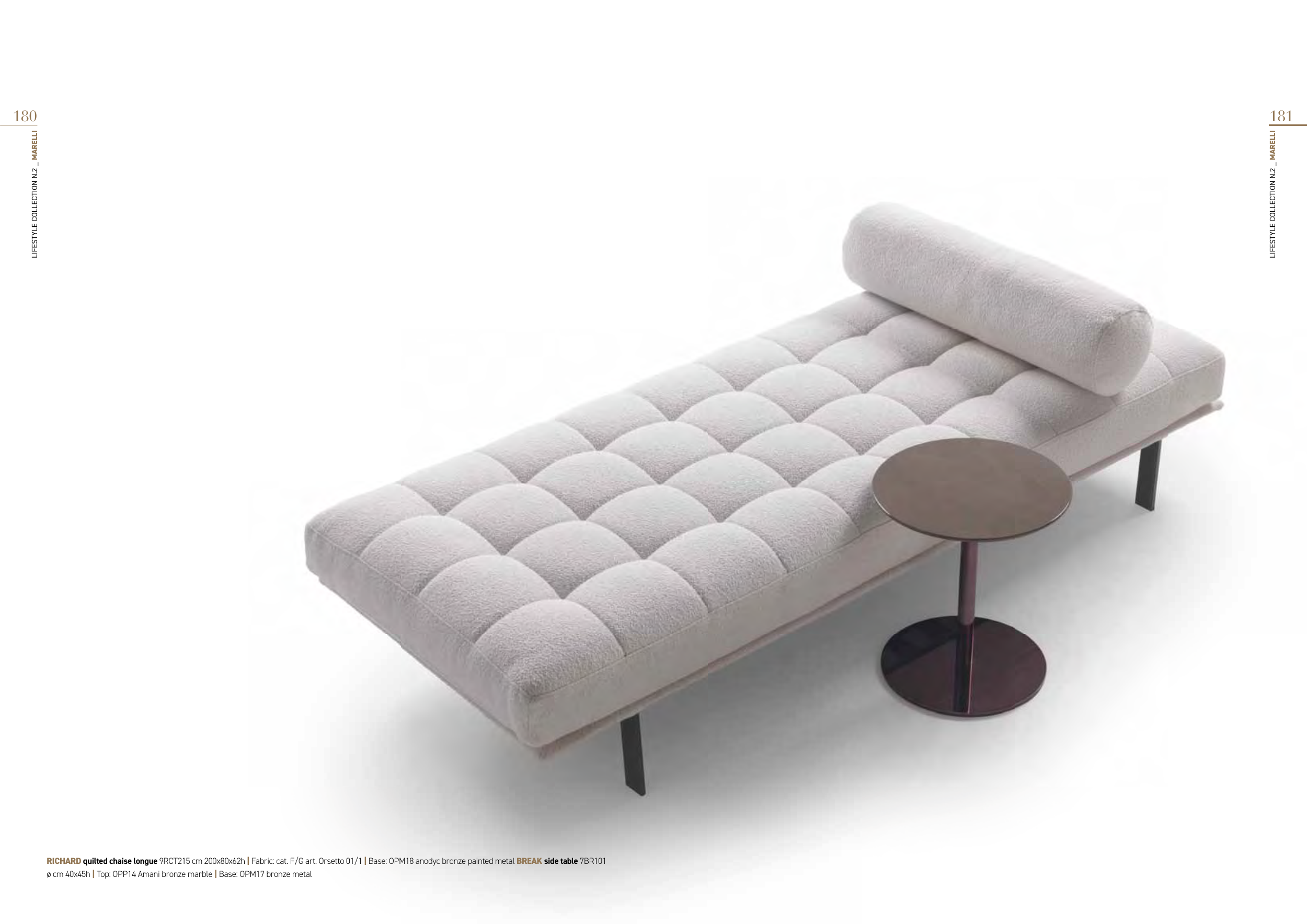 RICHARD quilted chaise longue 9RCT215 cm 200x80x62h | Fabric: cat. F/G art. Orsetto 01/1 | Base: OPM18 anodyc bronze painted metal BREAK side table 7BR101