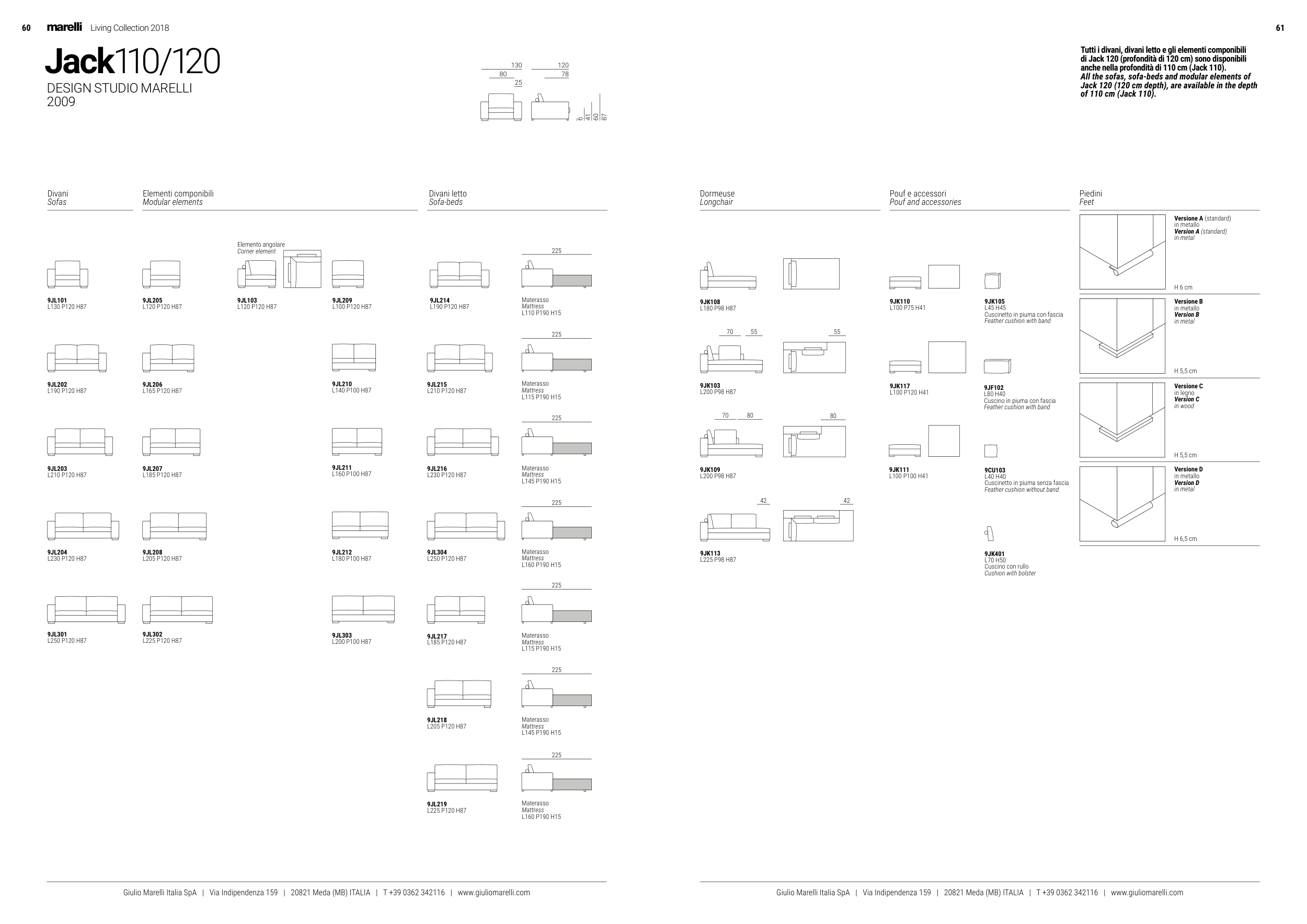 di Jack 120 (profondità di 120 cm) sono disponibili