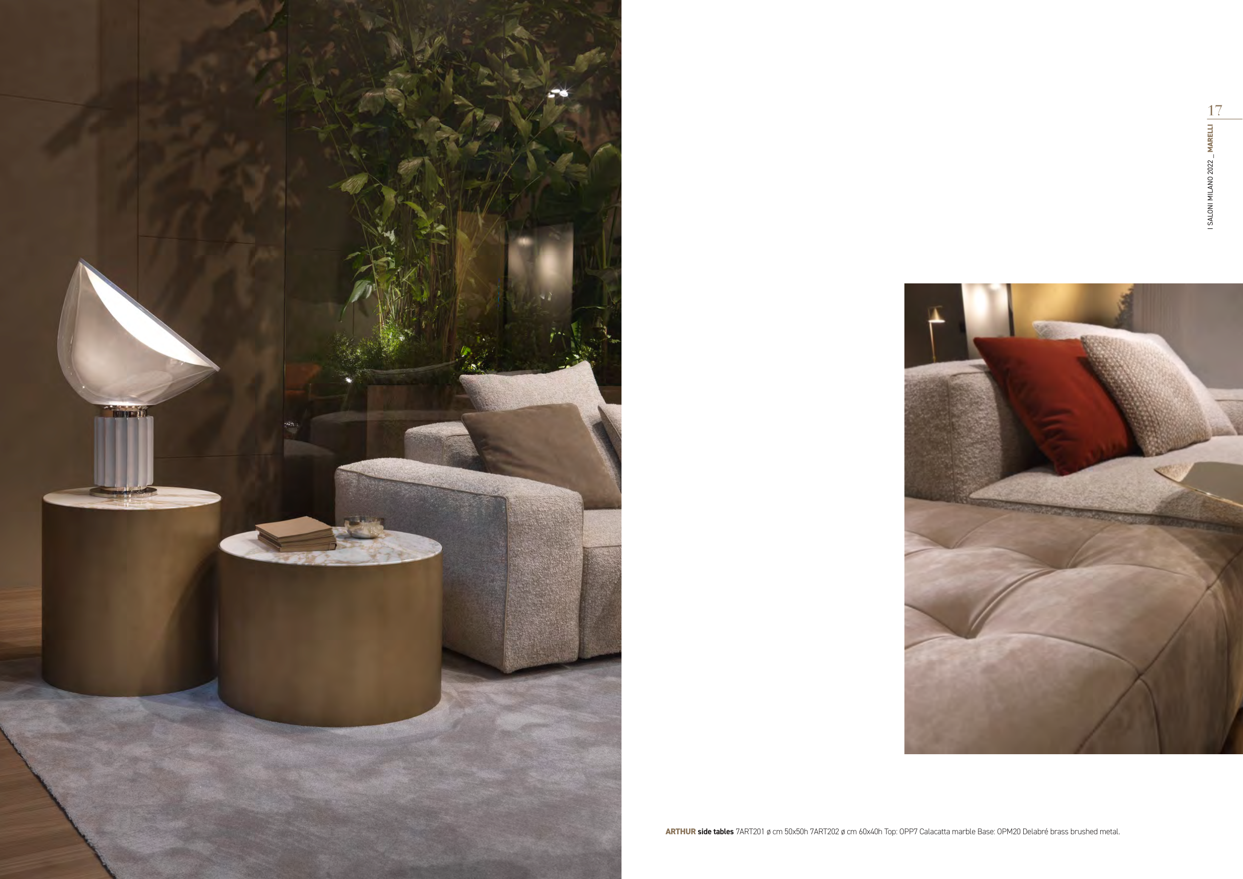 ARTHUR side tables 7ART201 ø cm 50x50h 7ART202 ø cm 60x40h Top: OPP7 Calacatta marble Base: OPM20 Delabré brass brushed metal.