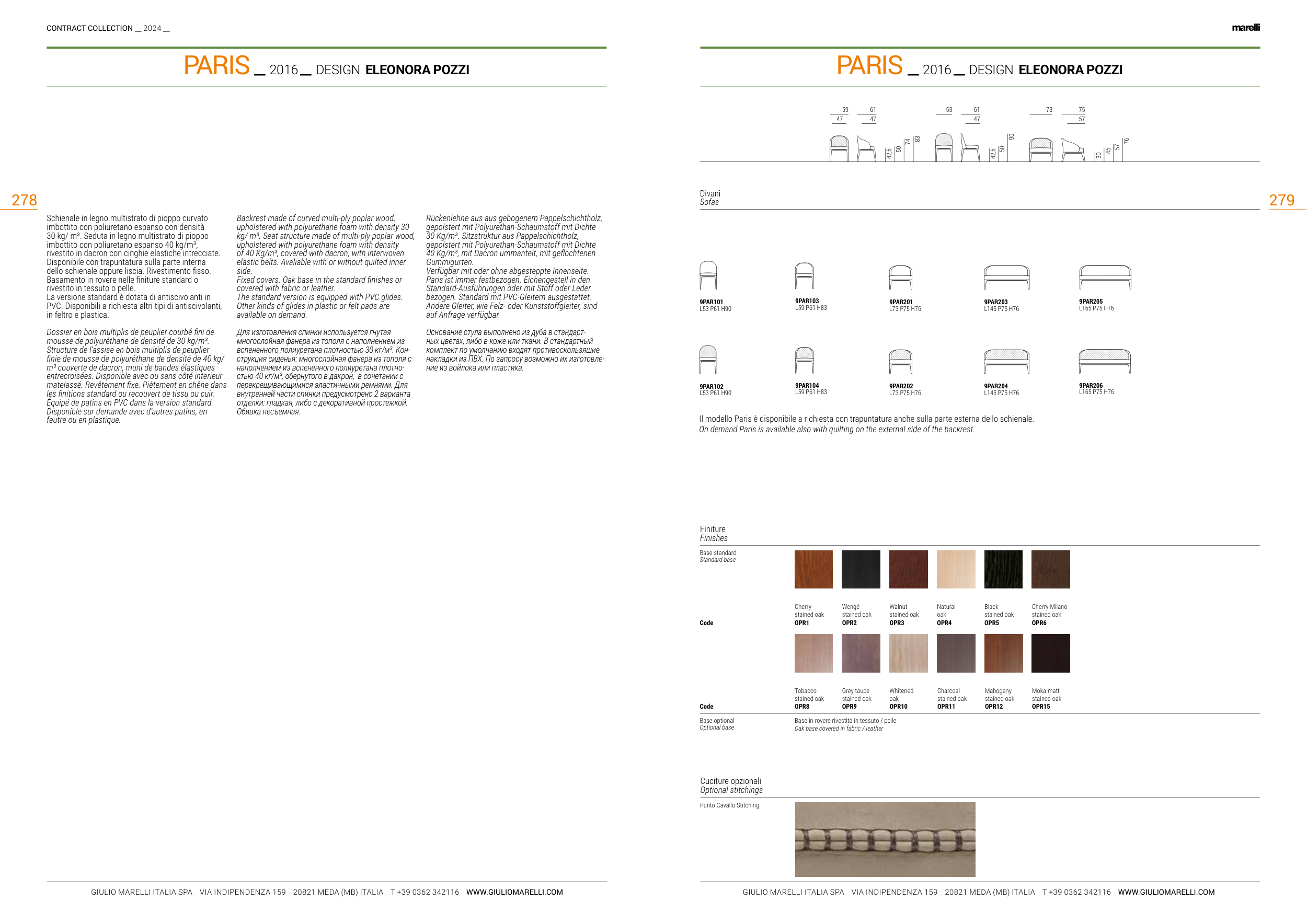 On demand Paris is available also with quilting on the external side of the backrest.
