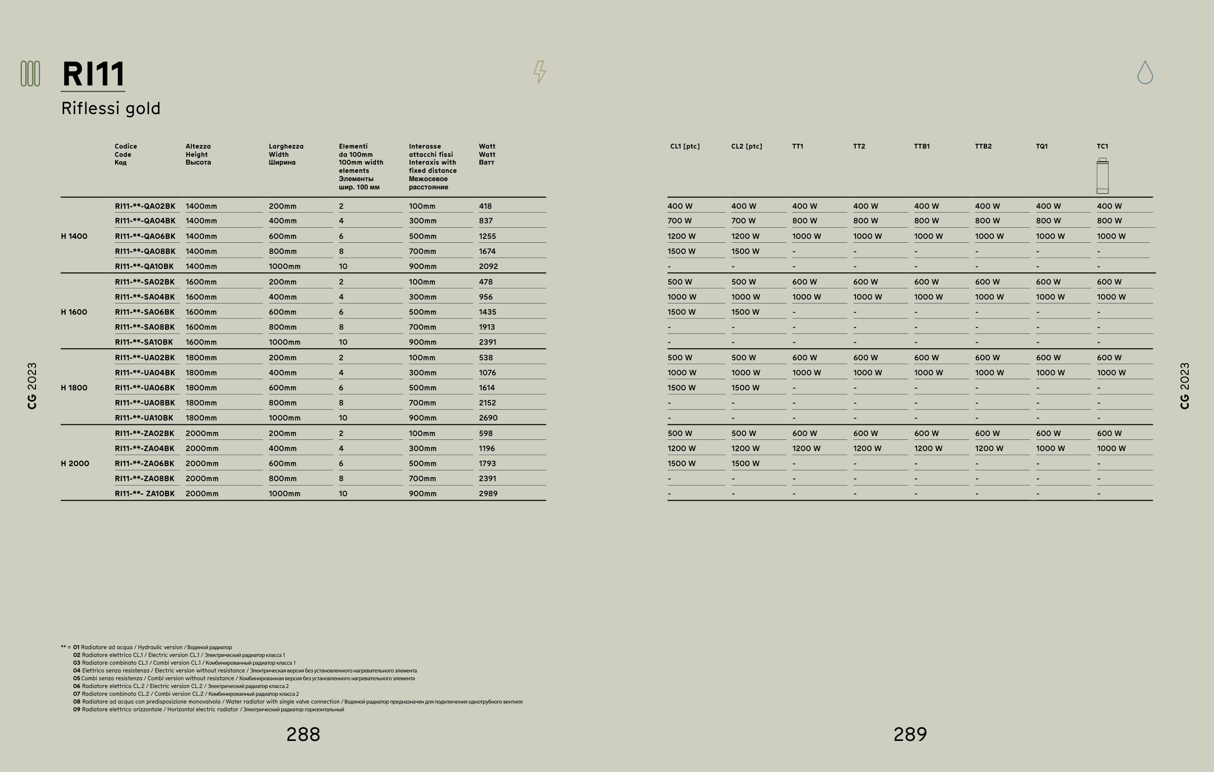 02 Radiatore elettrico CL.1 / Electric version CL.1 / Электрический радиатор класса 1