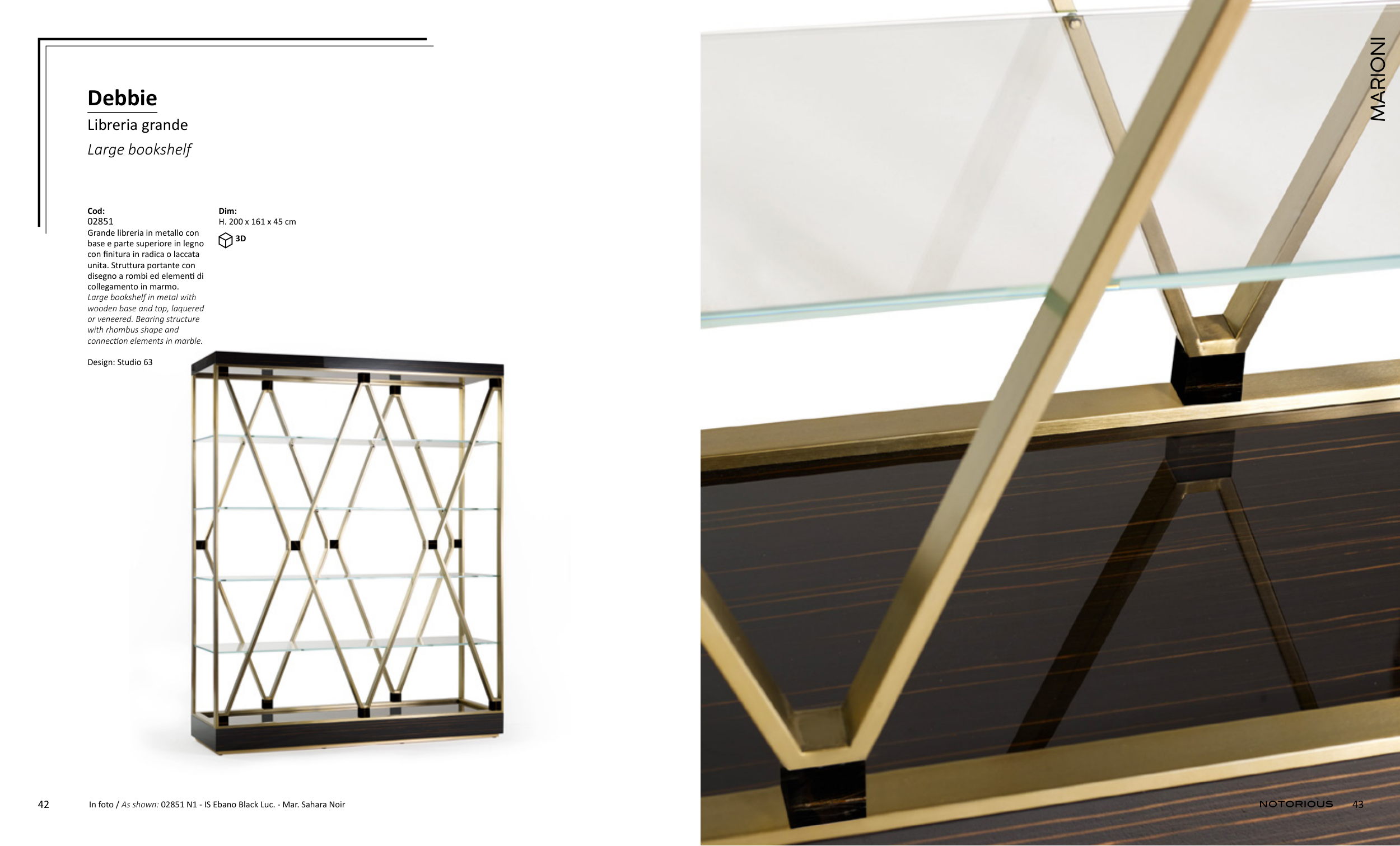 In foto / As shown: 02851 N1 - IS Ebano Black Luc. - Mar. Sahara Noir