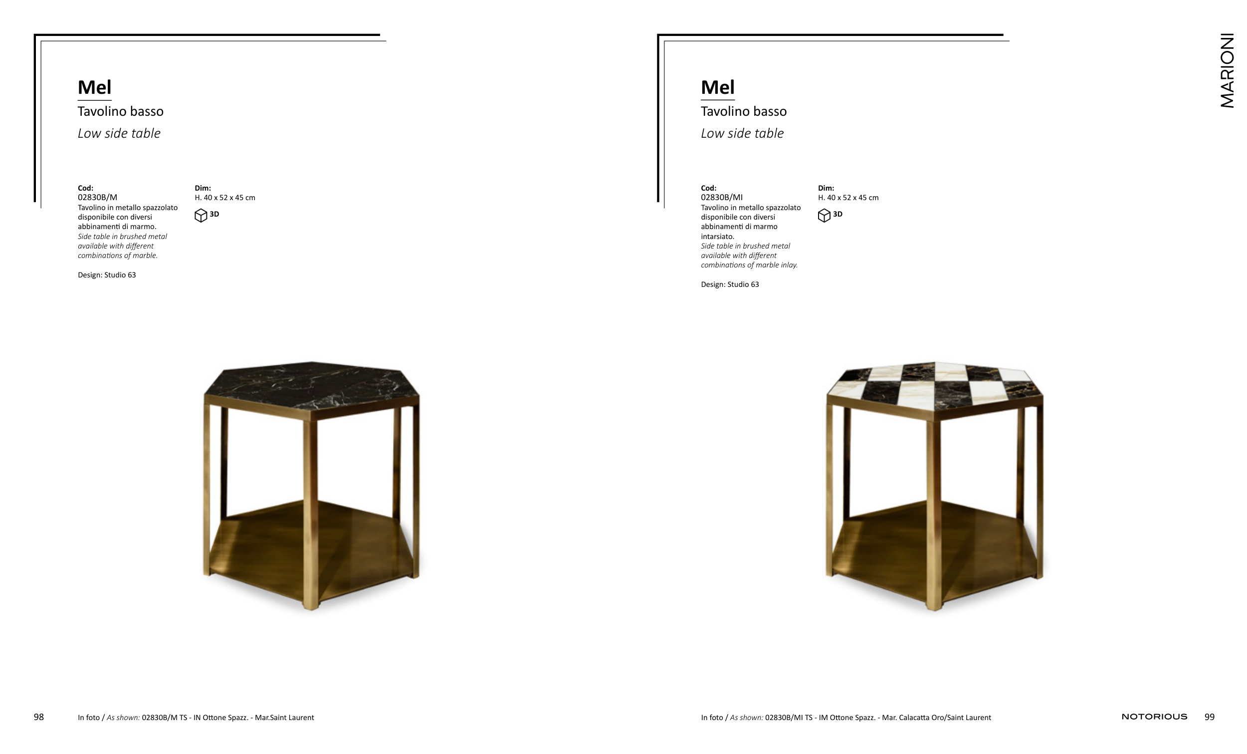 In foto / As shown: 02830B/MI TS - IM Ottone Spazz. - Mar. Calacatta Oro/Saint Laurent