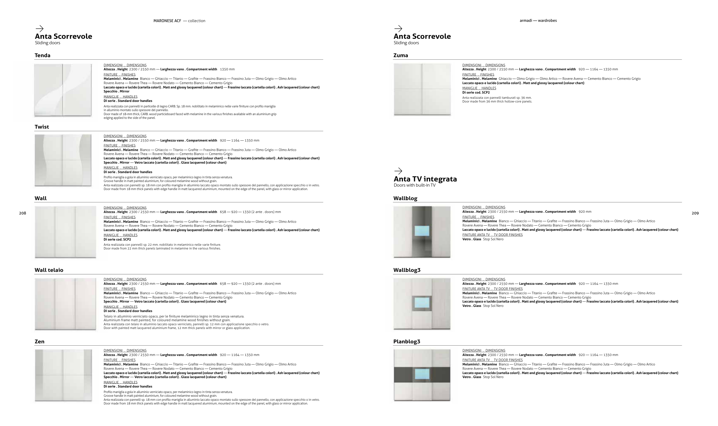 Altezza . Height 2300 / 2550 mm — Larghezza vano . Compartment width 920 mm