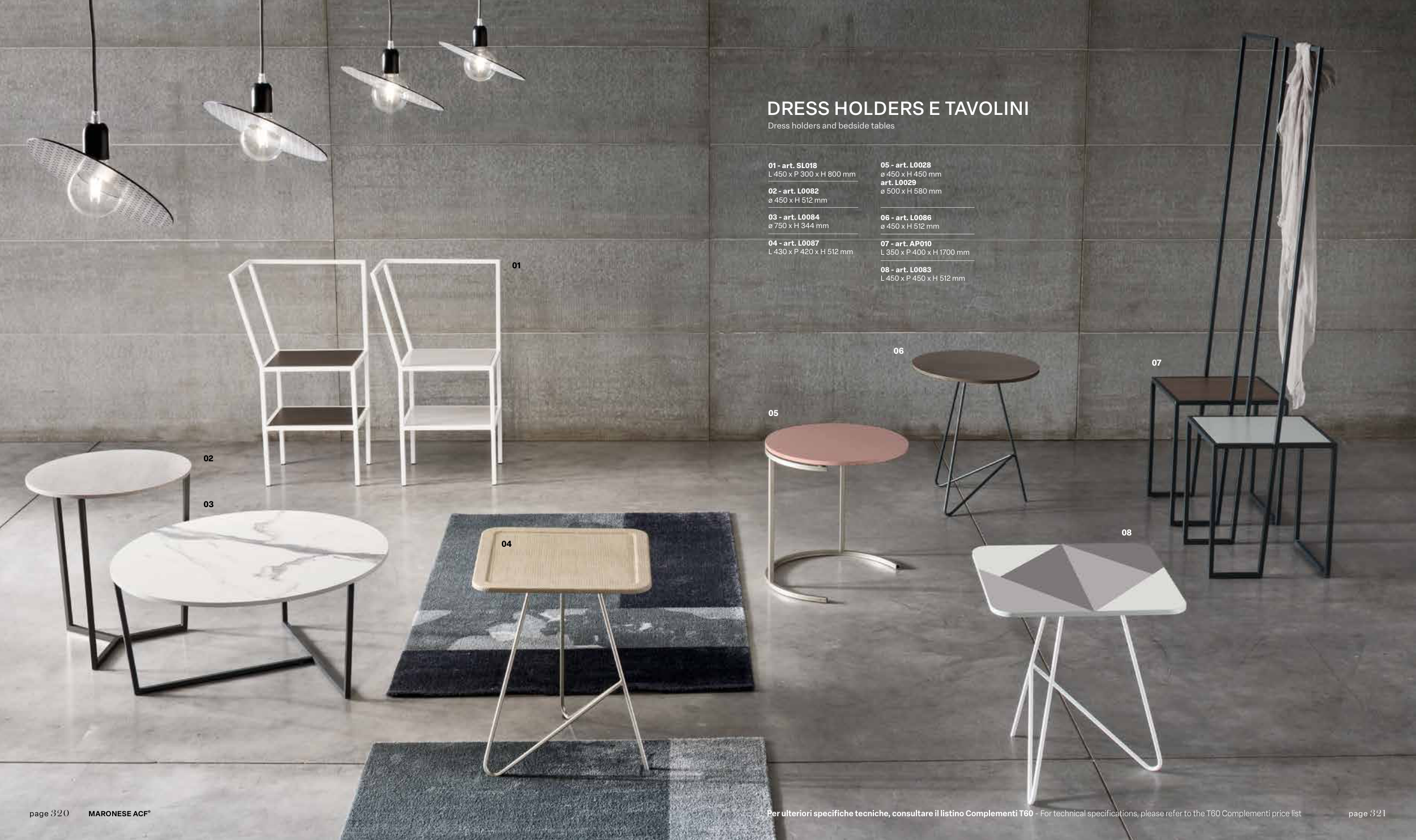 Per ulteriori specifiche tecniche, consultare il listino Complementi T60 - For technical specifications, please refer to the T60 Complementi price list