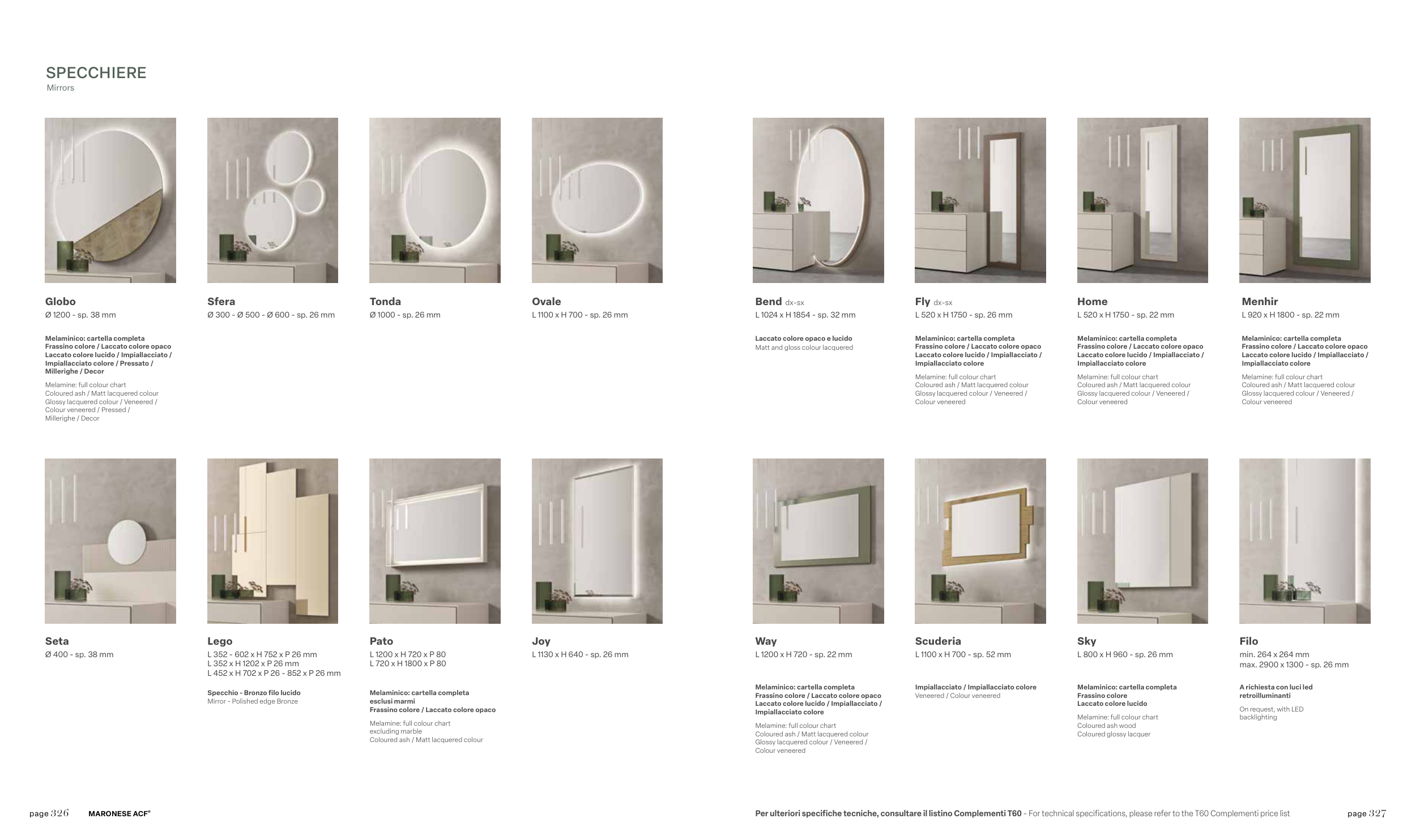 Per ulteriori specifiche tecniche, consultare il listino Complementi T60 - For technical specifications, please refer to the T60 Complementi price list