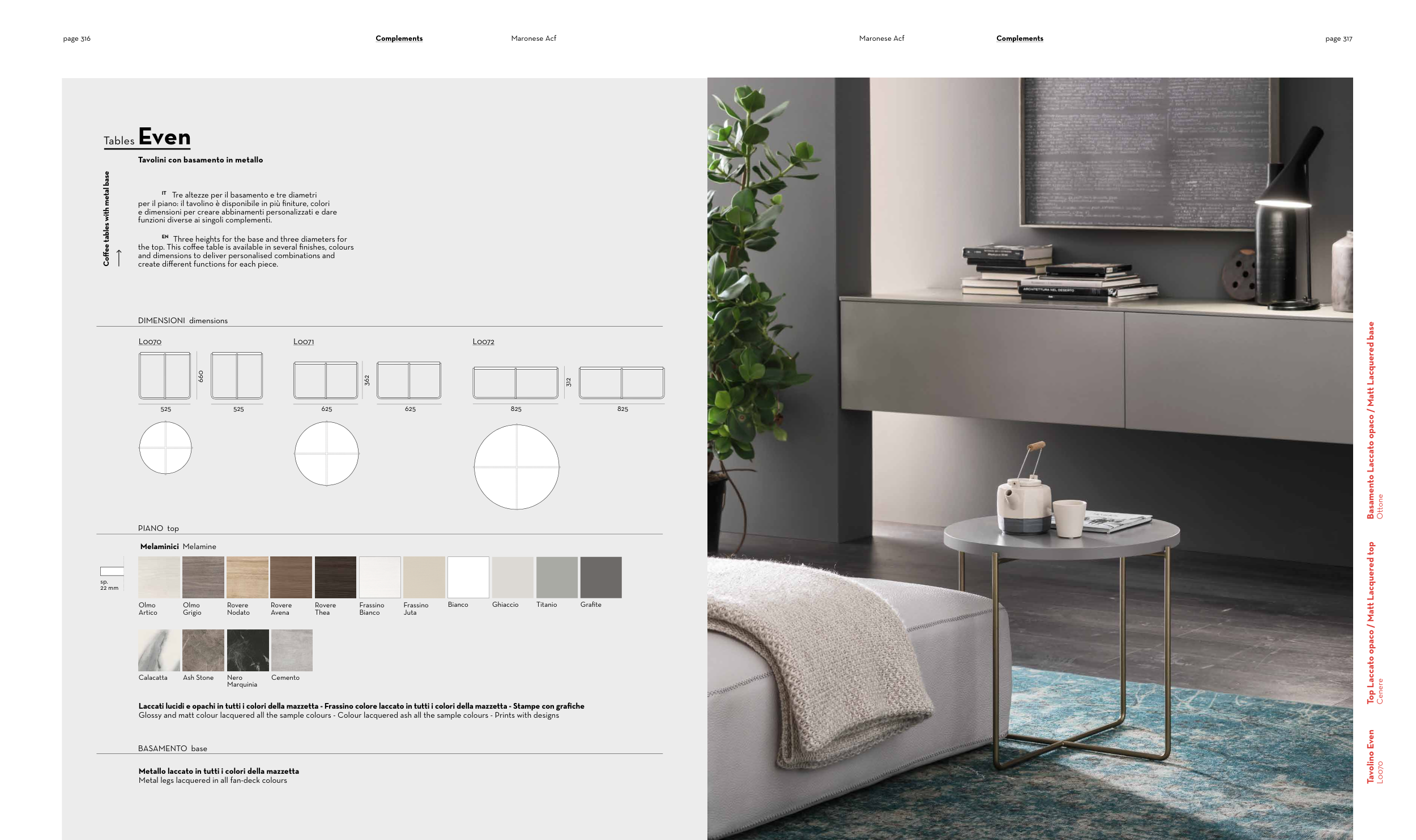 per il piano: il tavolino è disponibile in più finiture, colori