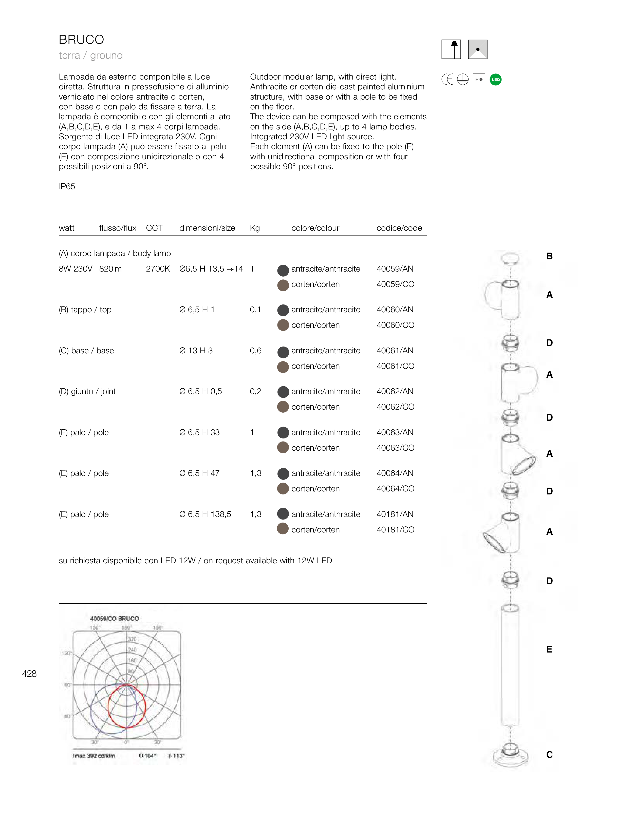 su richiesta disponibile con LED 12W / on request available with 12W LED