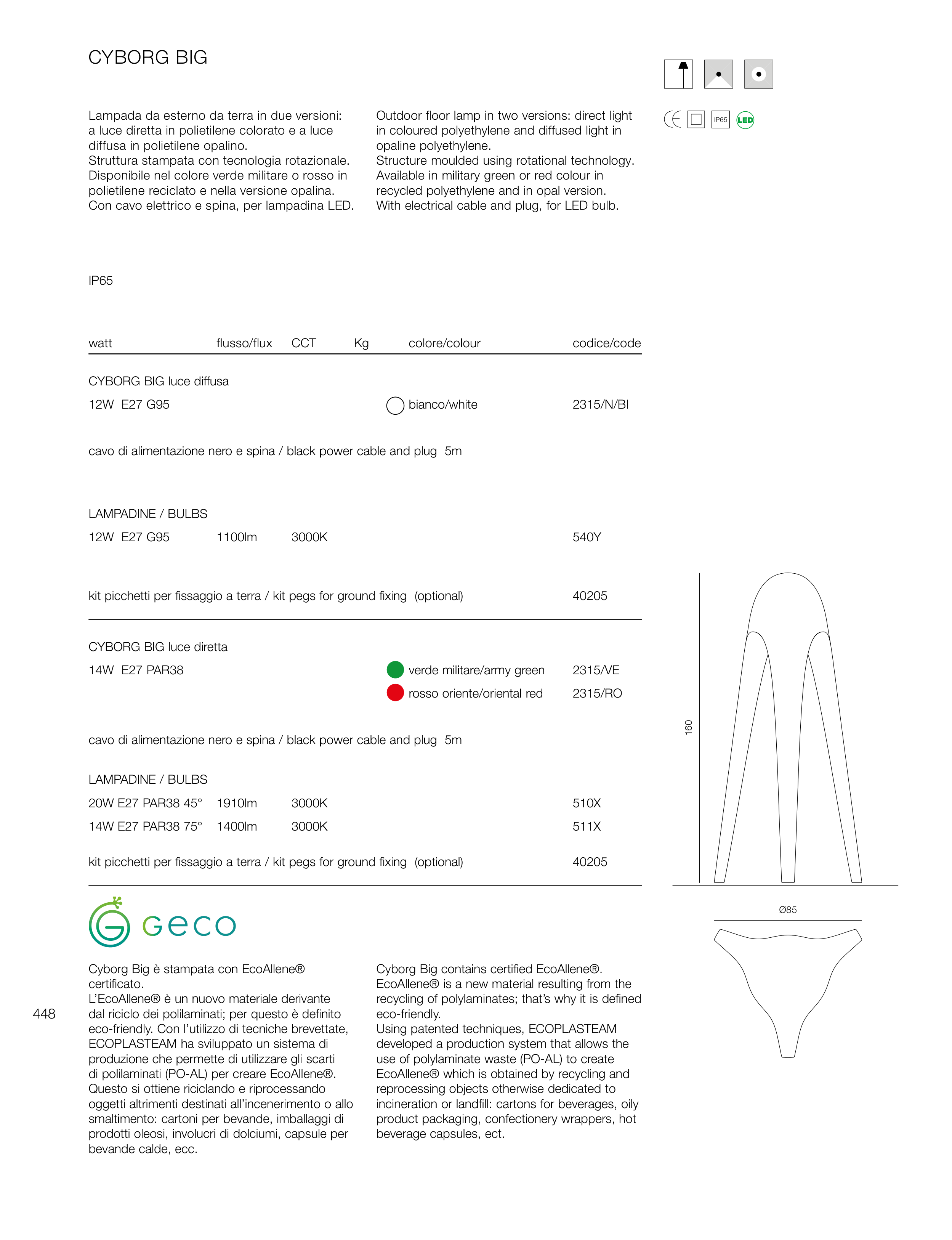 recycled polyethylene and in opal version.