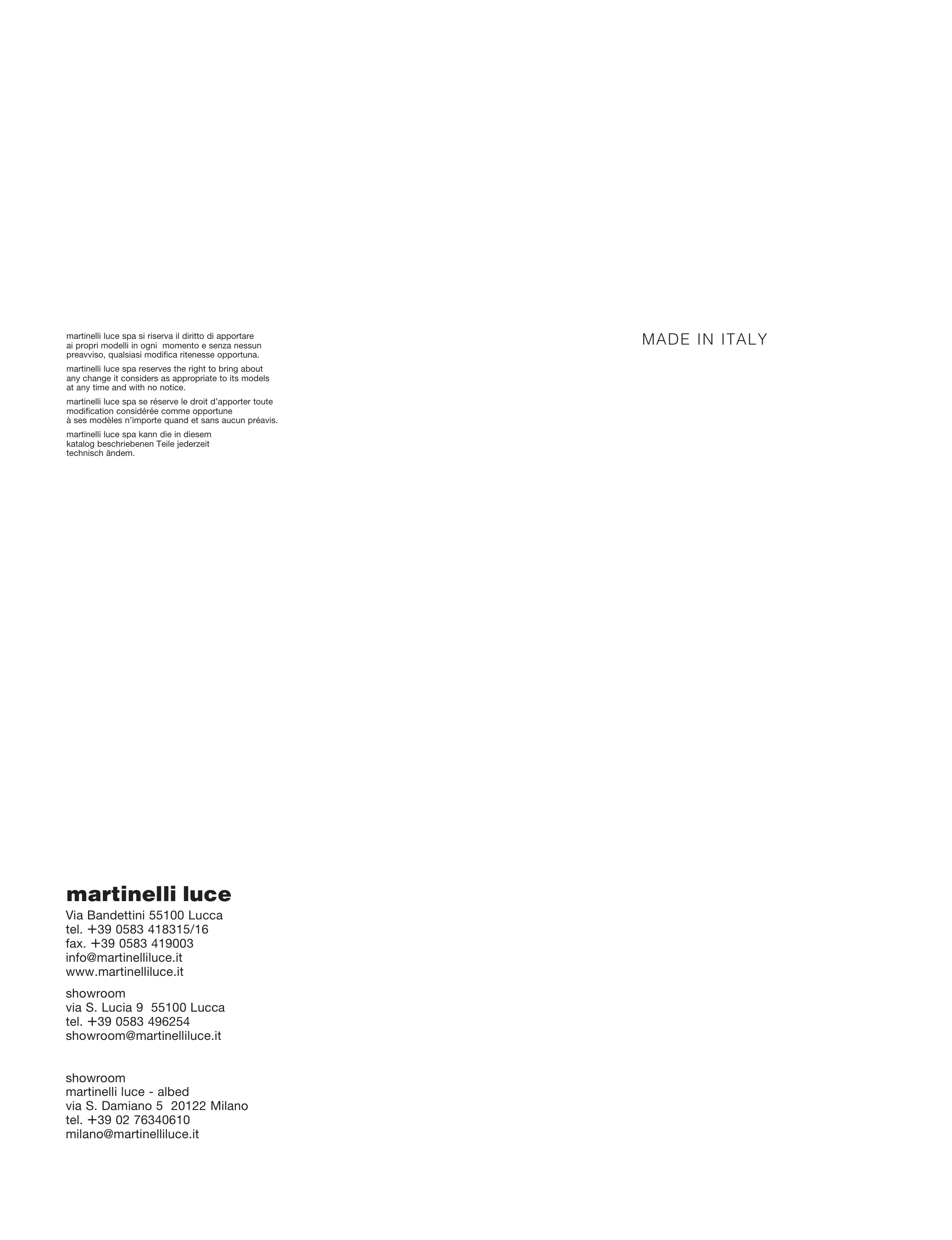 martinelli luce spa se réserve le droit d’apporter toute