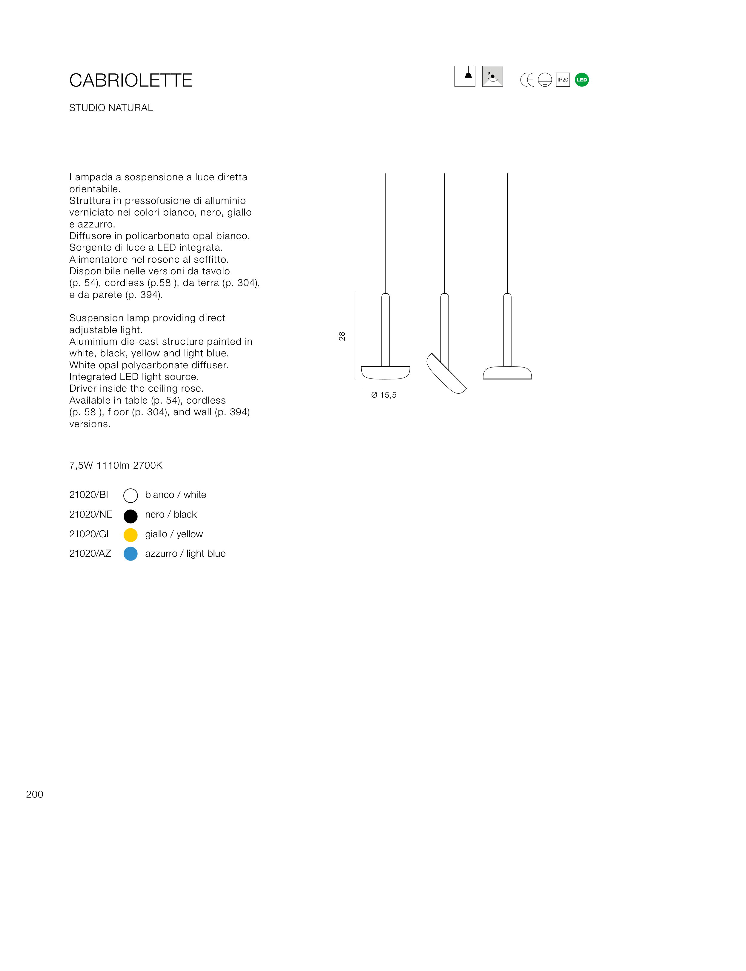 Available in table (p. 54), cordless