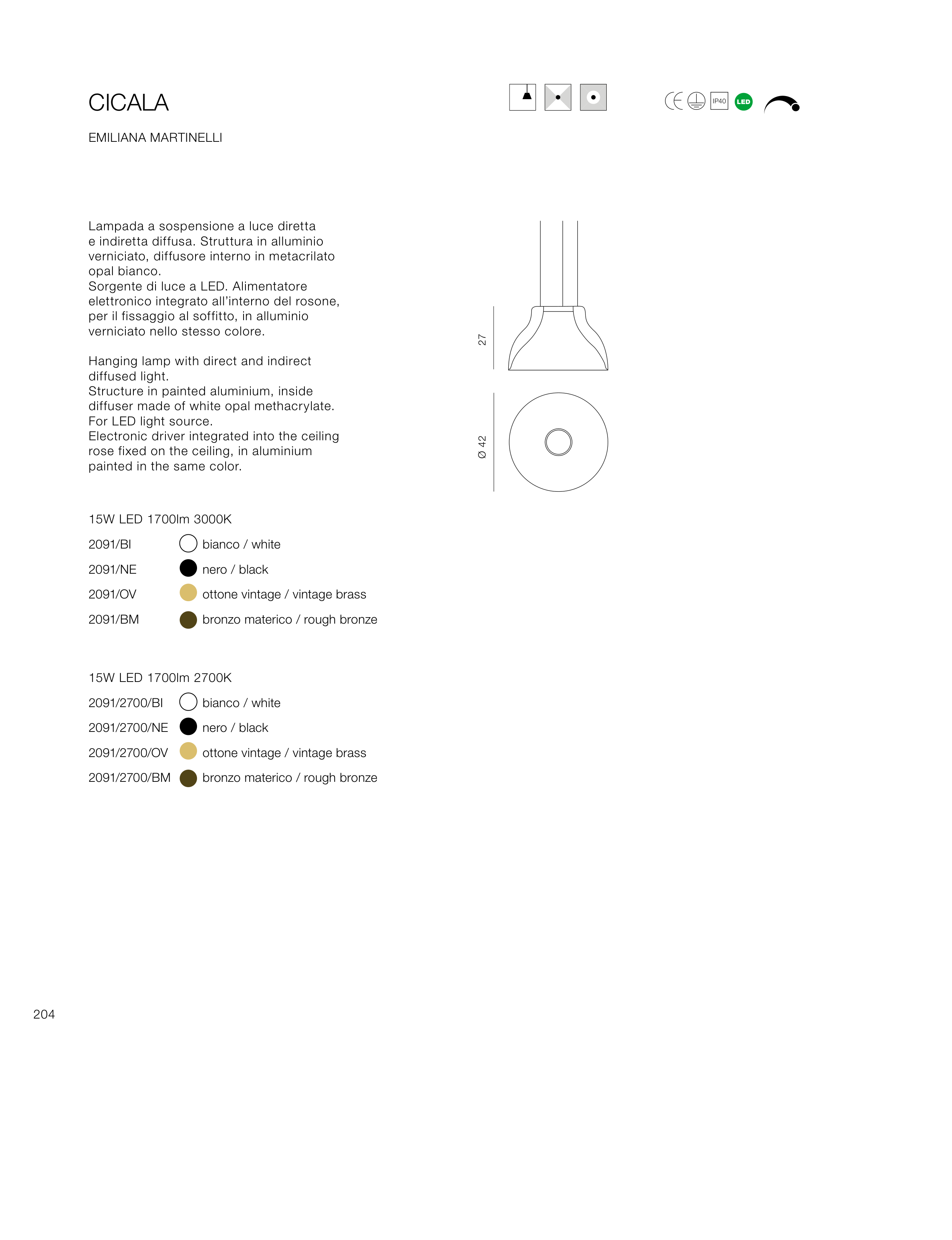 e indiretta diffusa. Struttura in alluminio