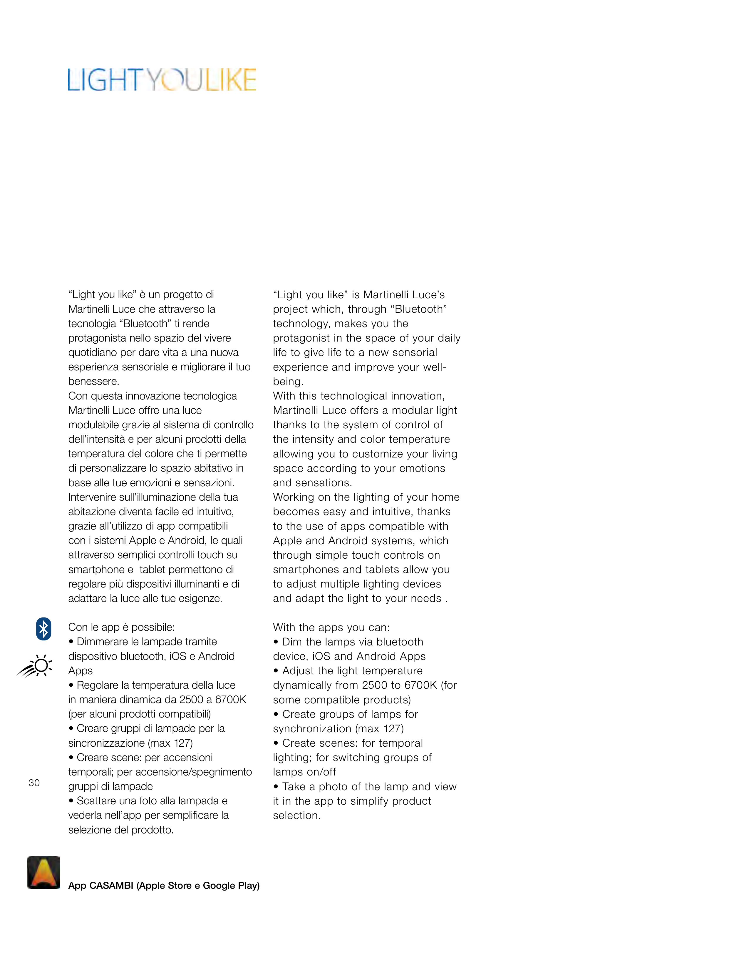 App CASAMBI (Apple Store e Google Play)