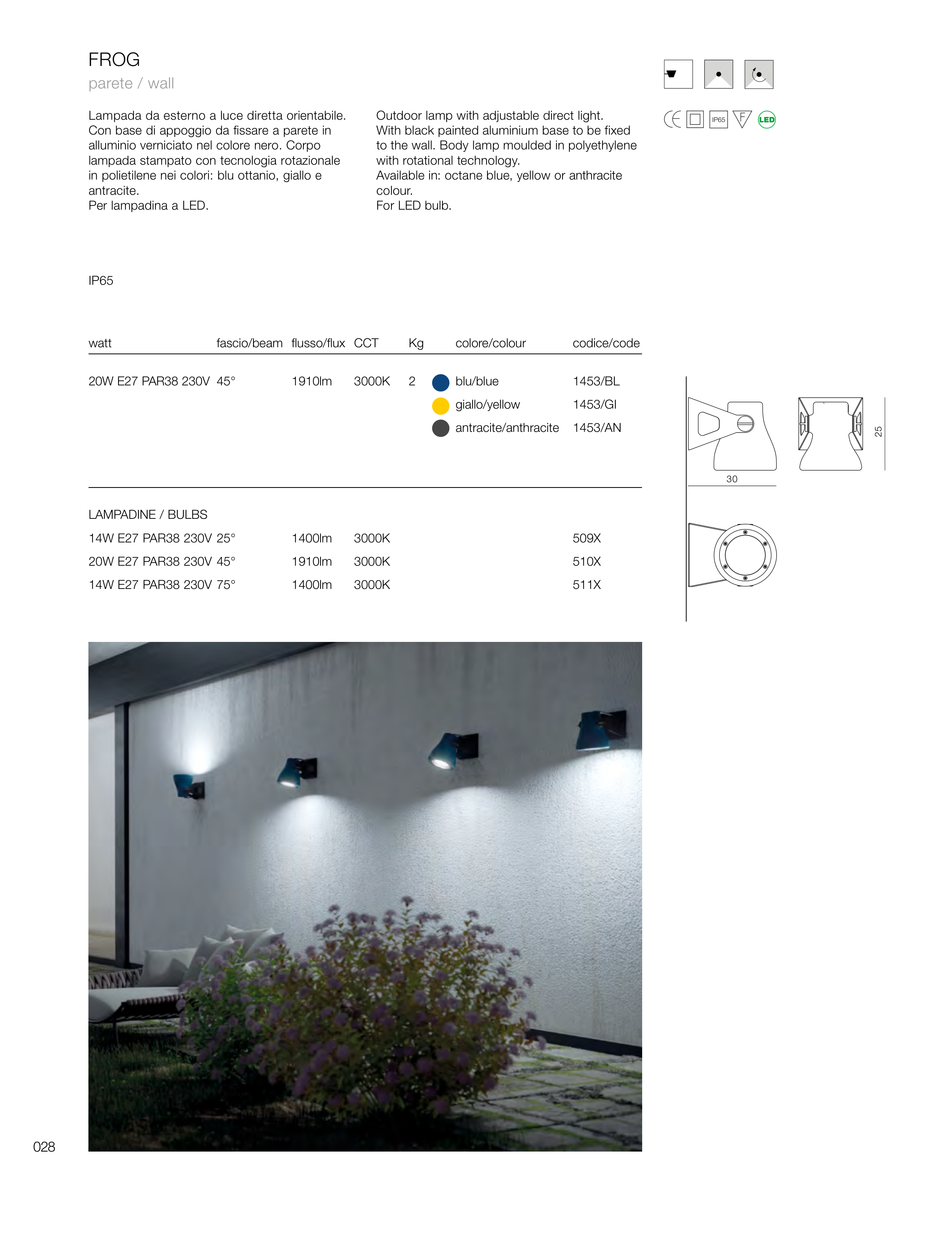 to the wall. Body lamp moulded in polyethylene