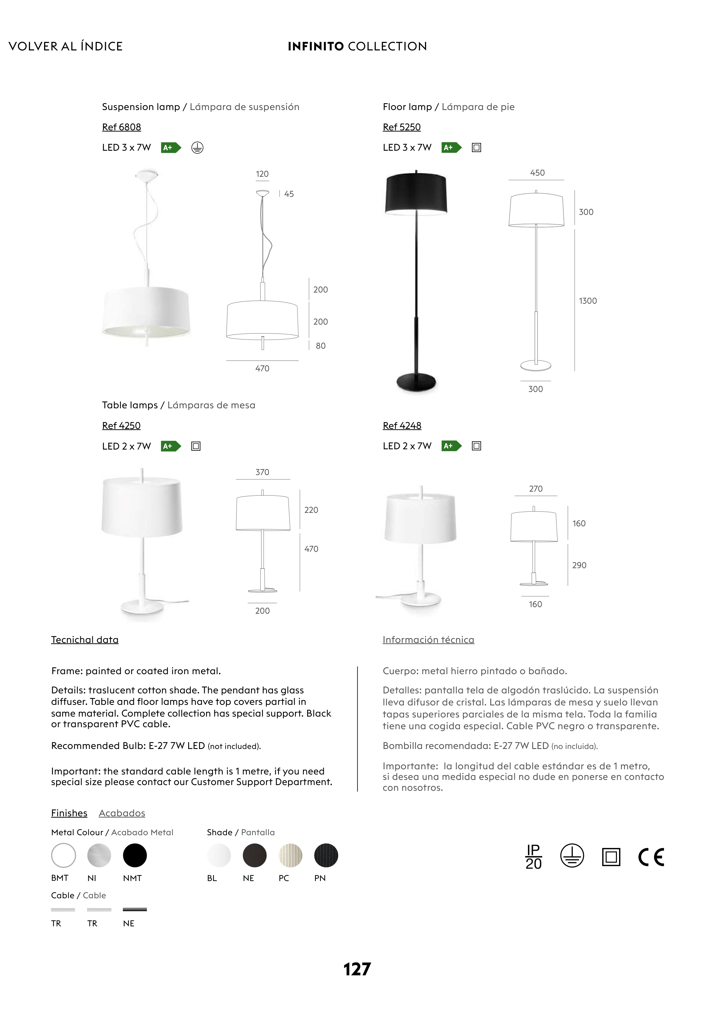 lleva difusor de cristal. Las lámparas de mesa y suelo llevan
