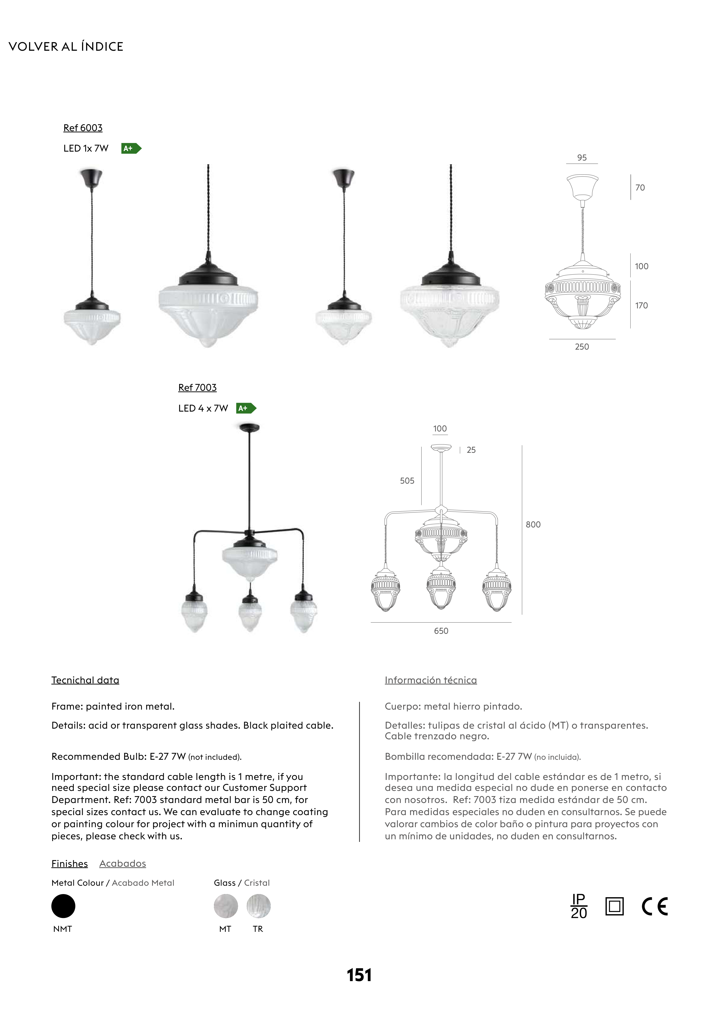 Bombilla recomendada: E-27 7W (no incluida).
