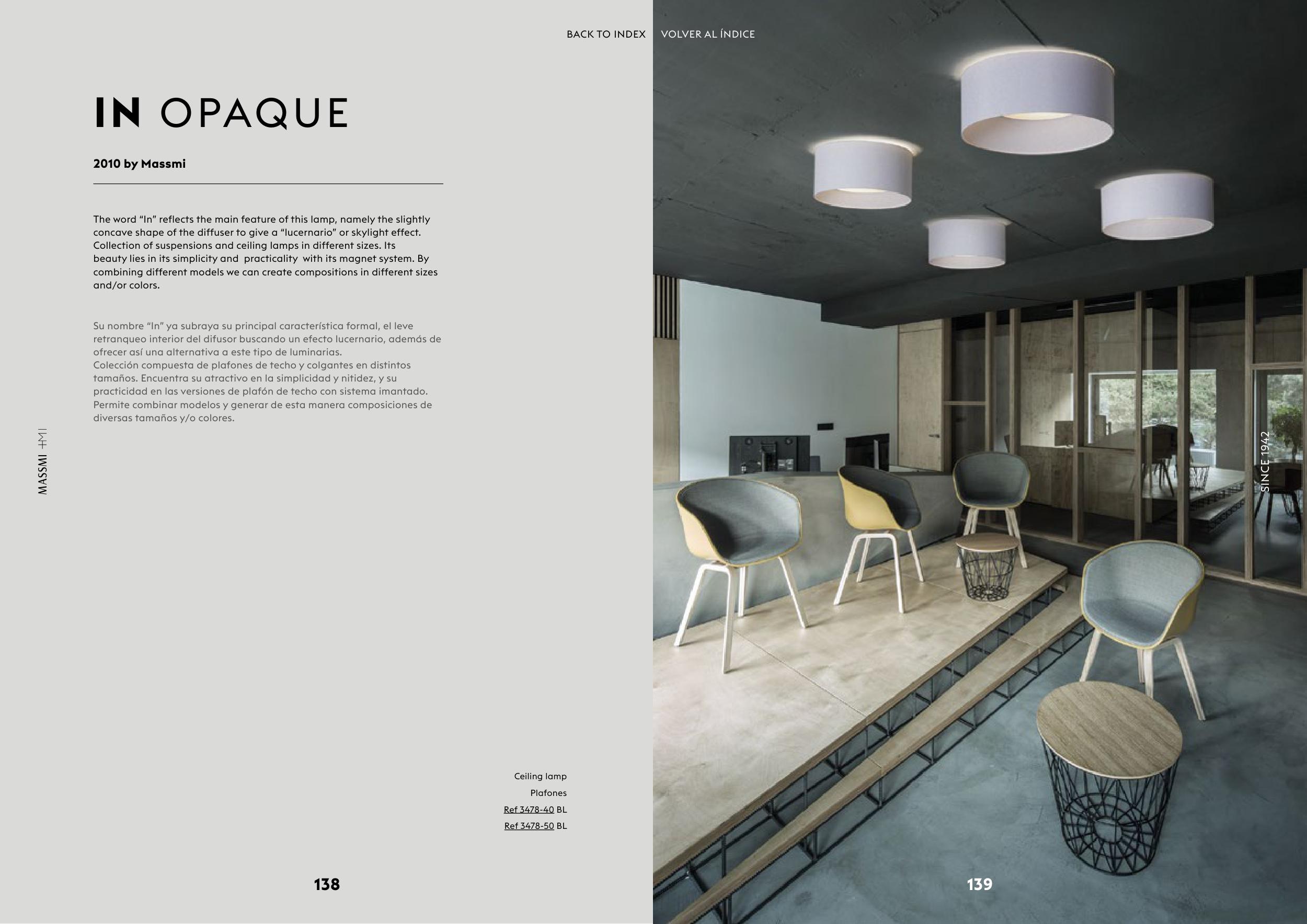 The word “In” reflects the main feature of this lamp, namely the slightly