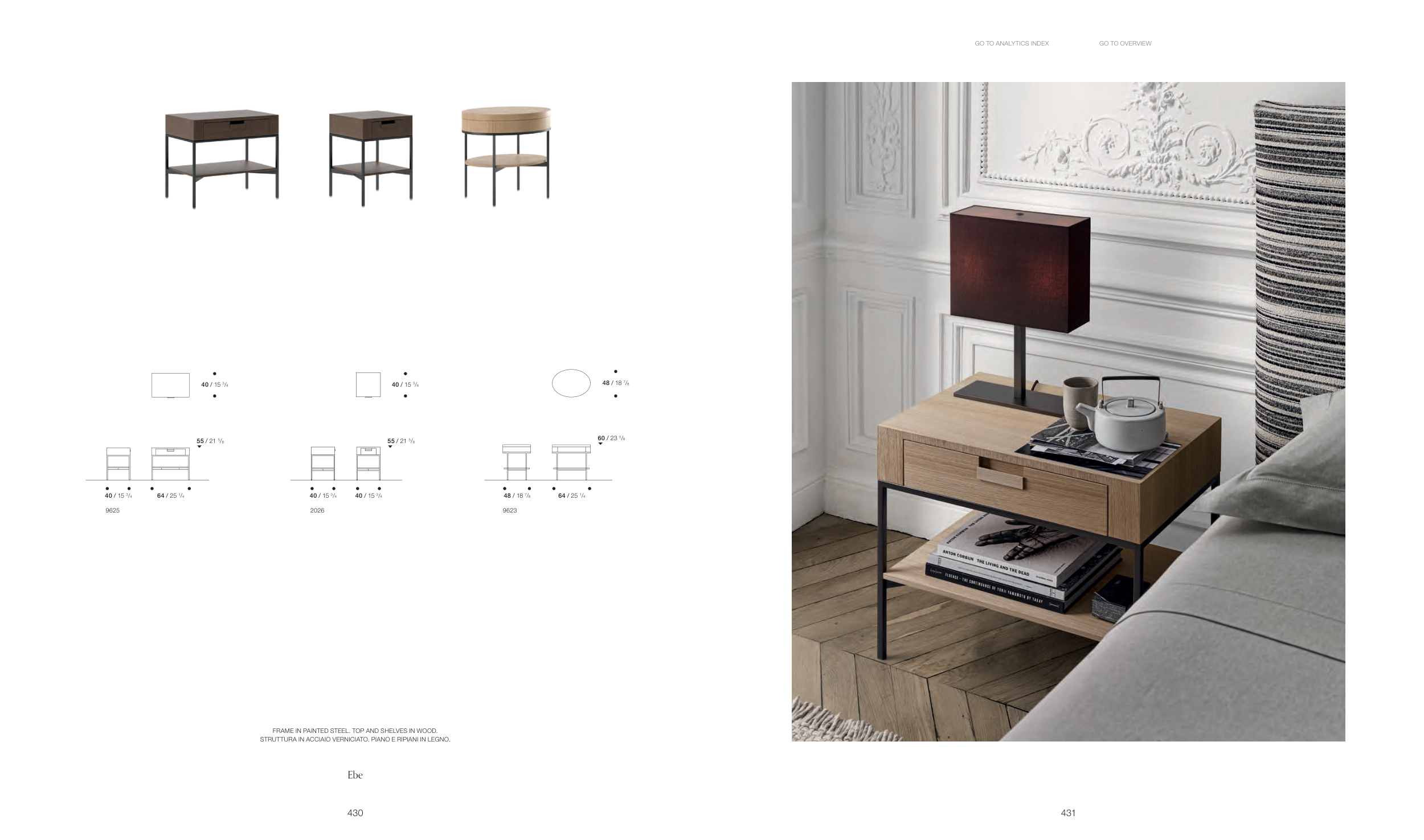 FRAME IN PAINTED STEEL. TOP AND SHELVES IN WOOD.