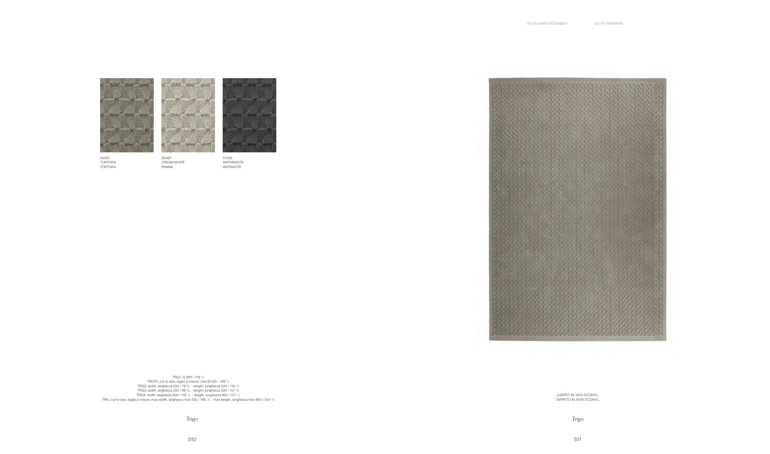 TRG2: width, larghezza 200 / 78 3/4 - length, lunghezza 300 / 118 1/8
