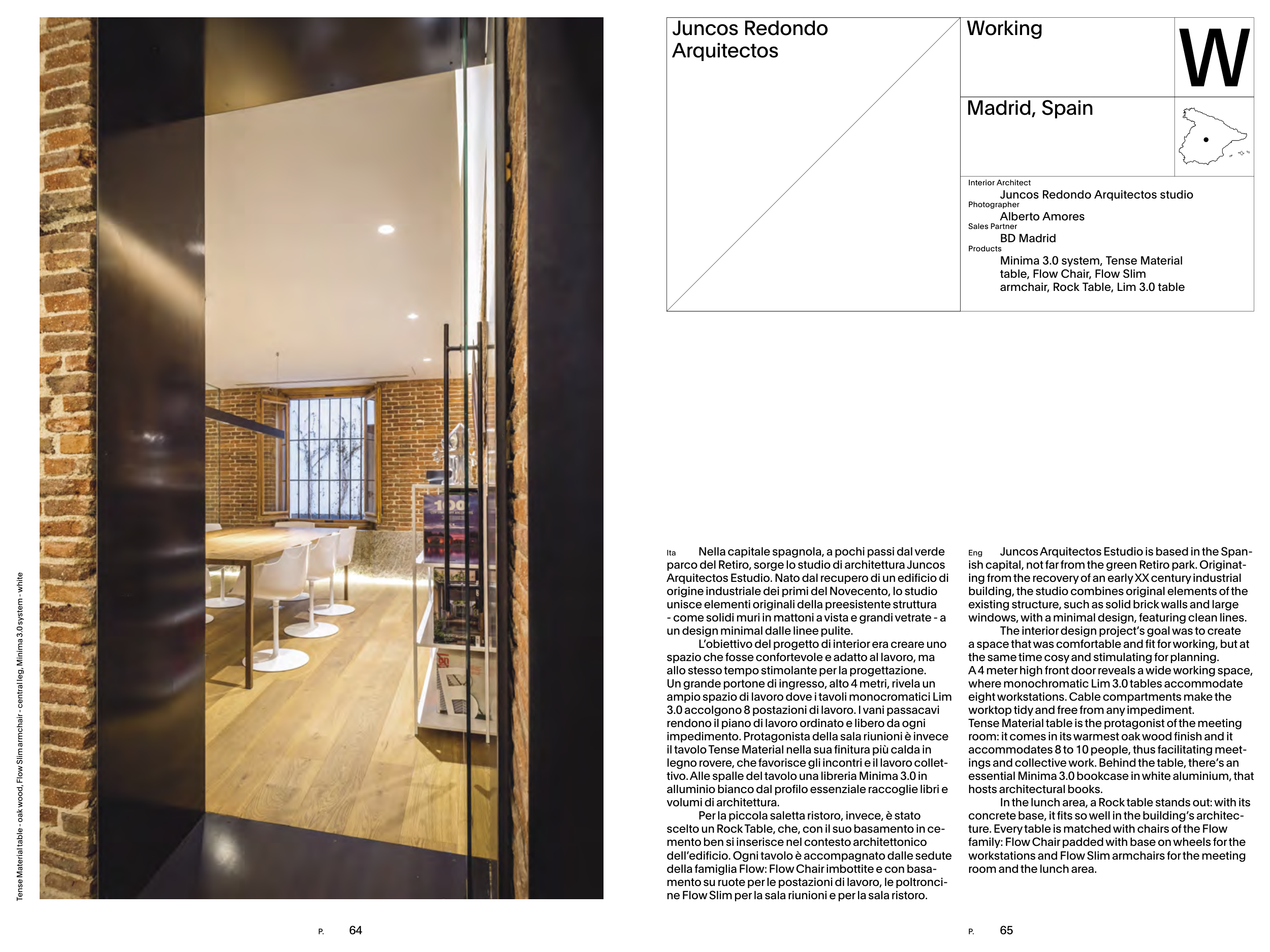 Tense Material table - oak wood, Flow Slim armchair - central leg, Minima 3.0 system - white