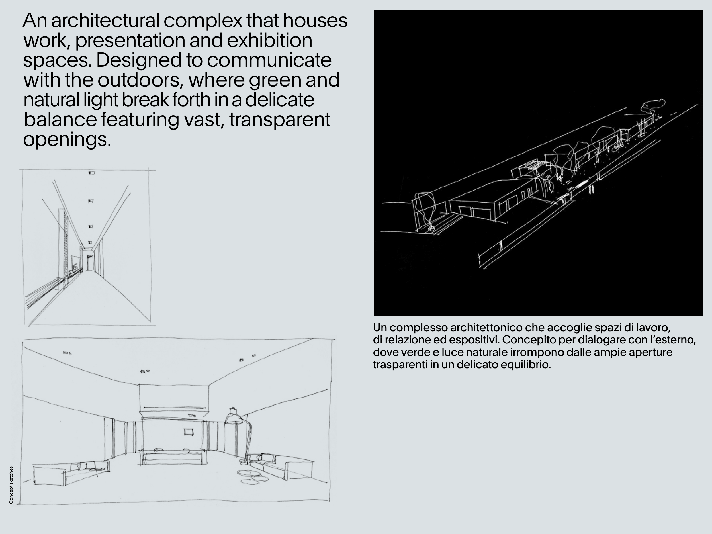 di relazione ed espositivi. Concepito per dialogare con l’esterno,