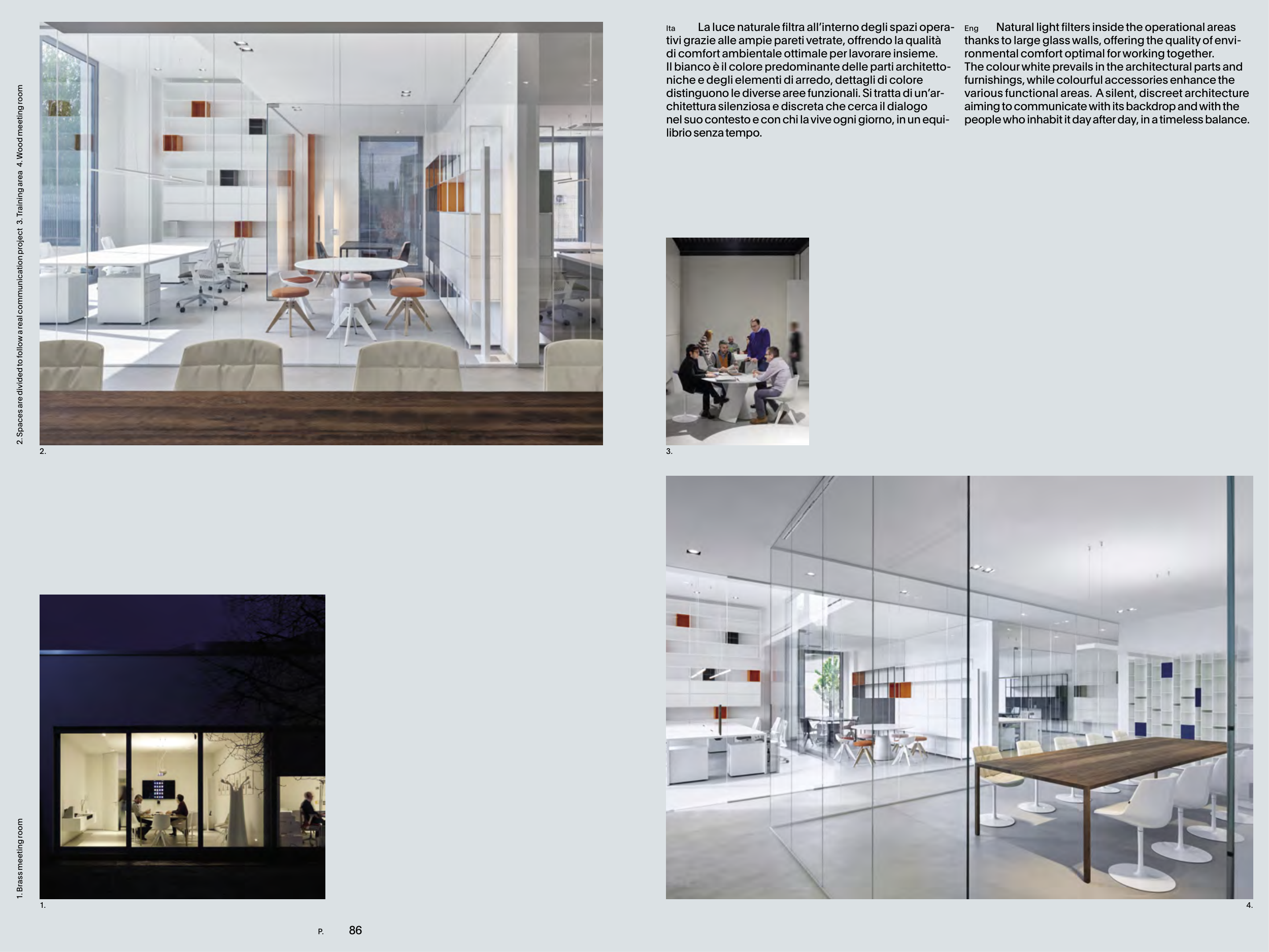 2. Spaces are divided to follow a real communication project 3. Training area 4. Wood meeting room