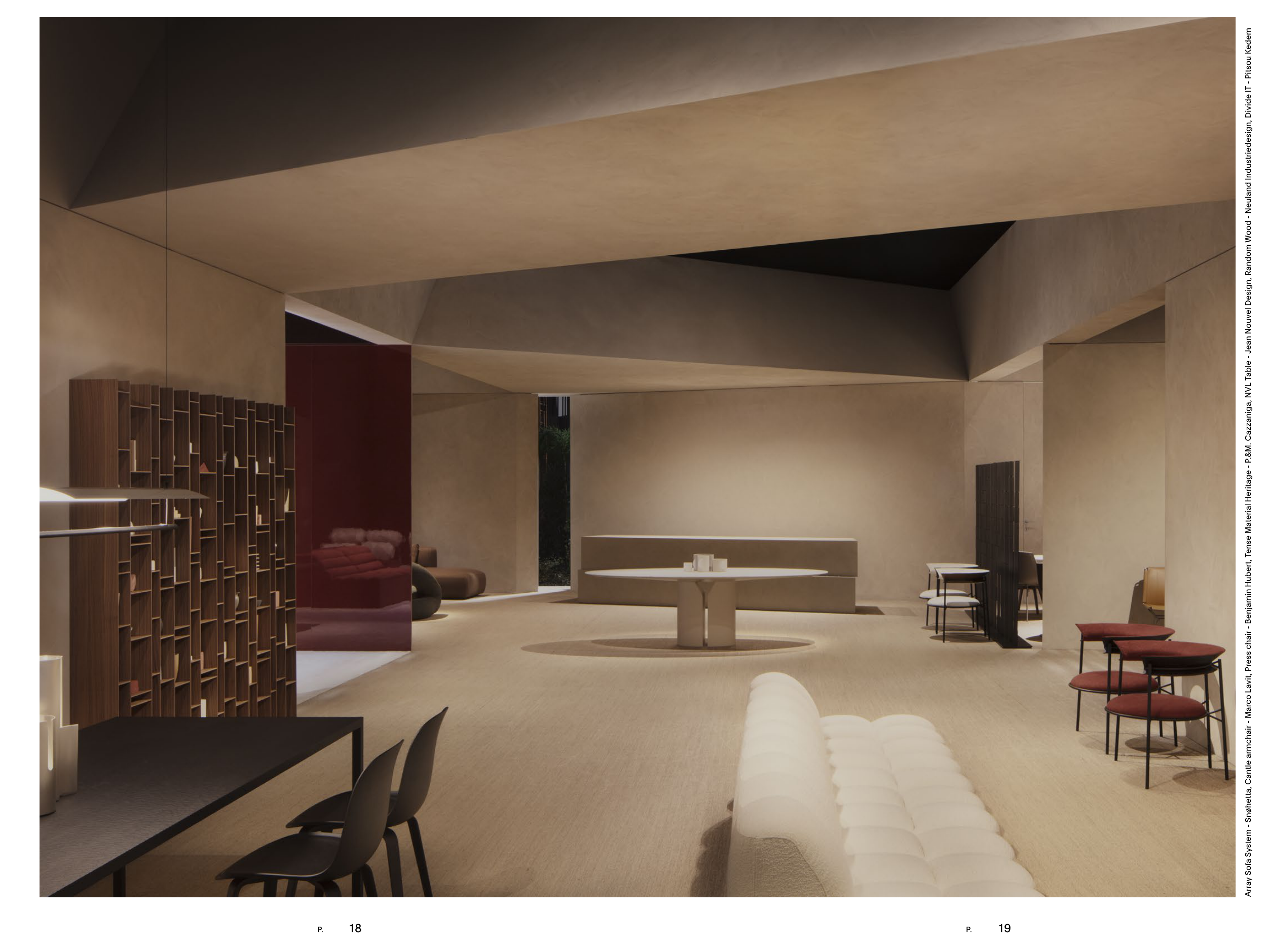 Array Sofa System - Snøhetta, Cantle armchair - Marco Lavit, Press chair - Benjamin Hubert, Tense Material Heritage - P.&M. Cazzaniga, NVL Table - Jean Nouvel Design, Random Wood - Neuland Industriedesign, Divide IT - Pitsou Kedem