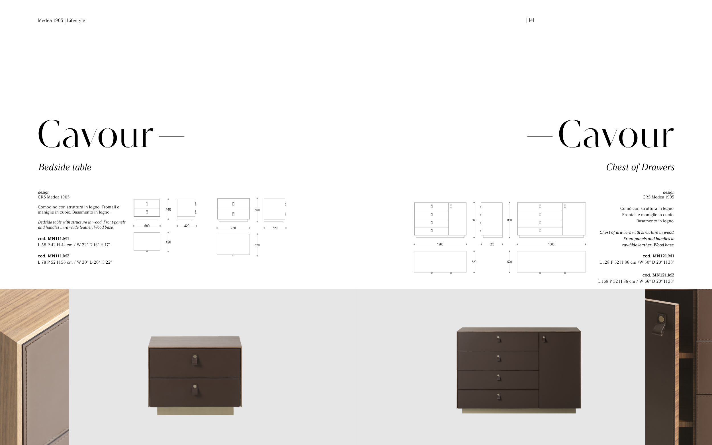 Frontali e maniglie in cuoio.