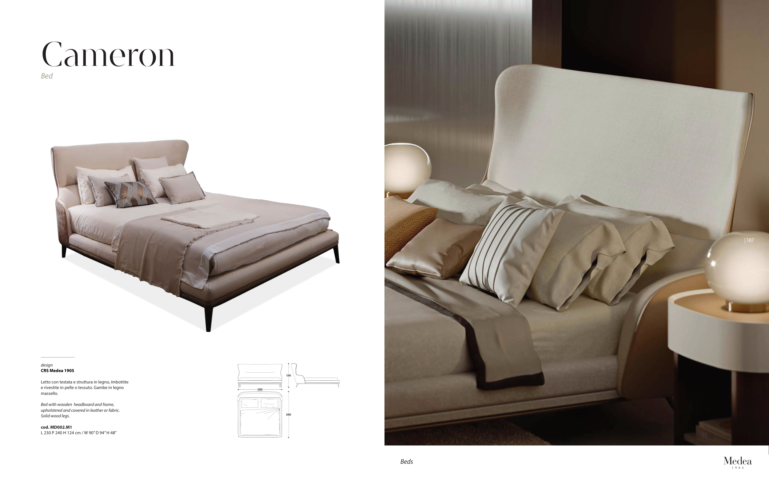 Letto con testata e struttura in legno, imbottite