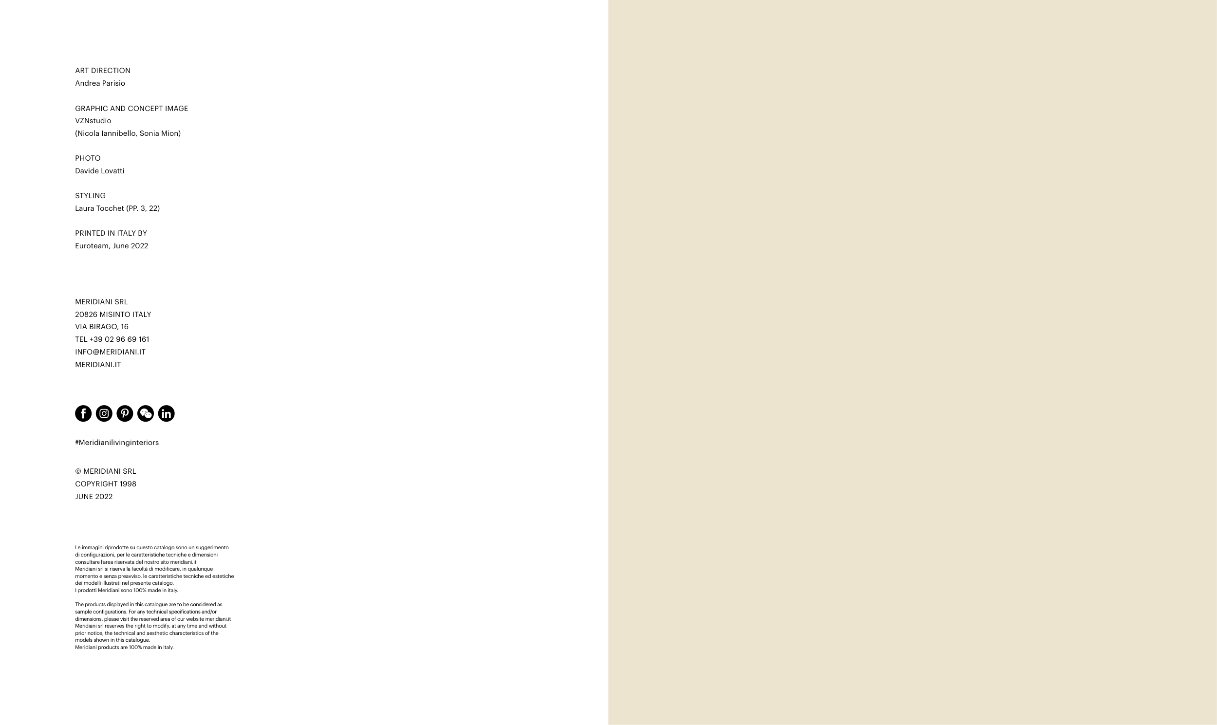 Meridiani srl reserves the right to modify, at any time and without