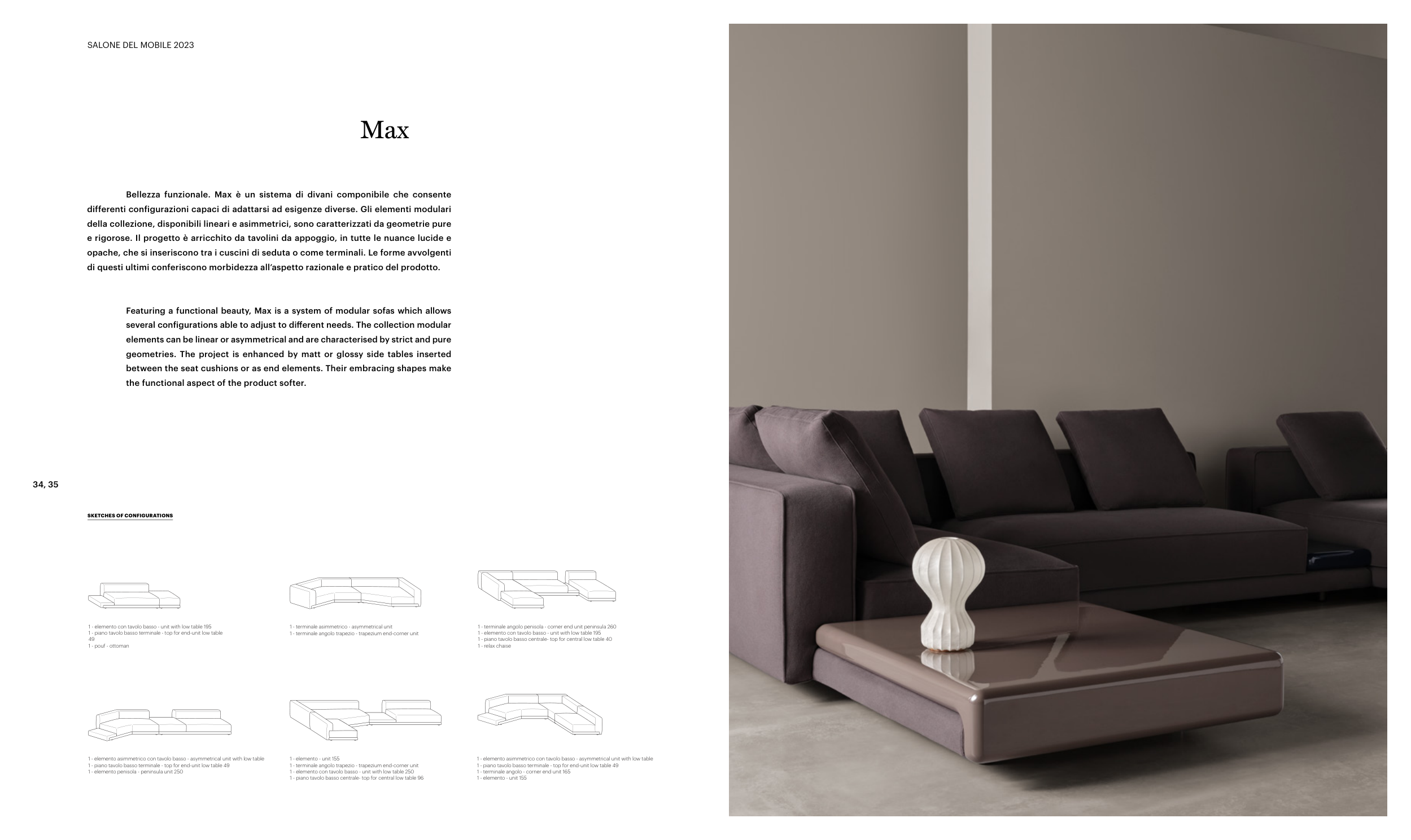 Featuring a functional beauty, Max is a system of modular sofas which allows