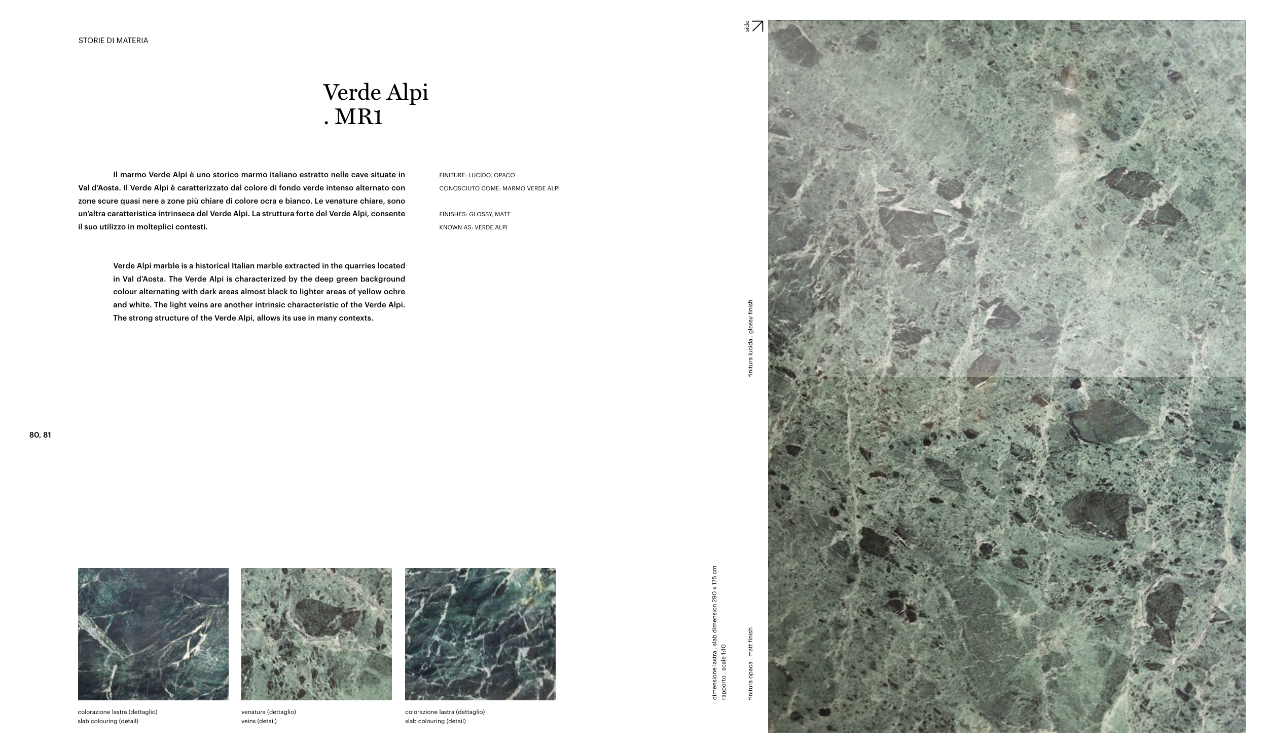 and white. The light veins are another intrinsic characteristic of the Verde Alpi.