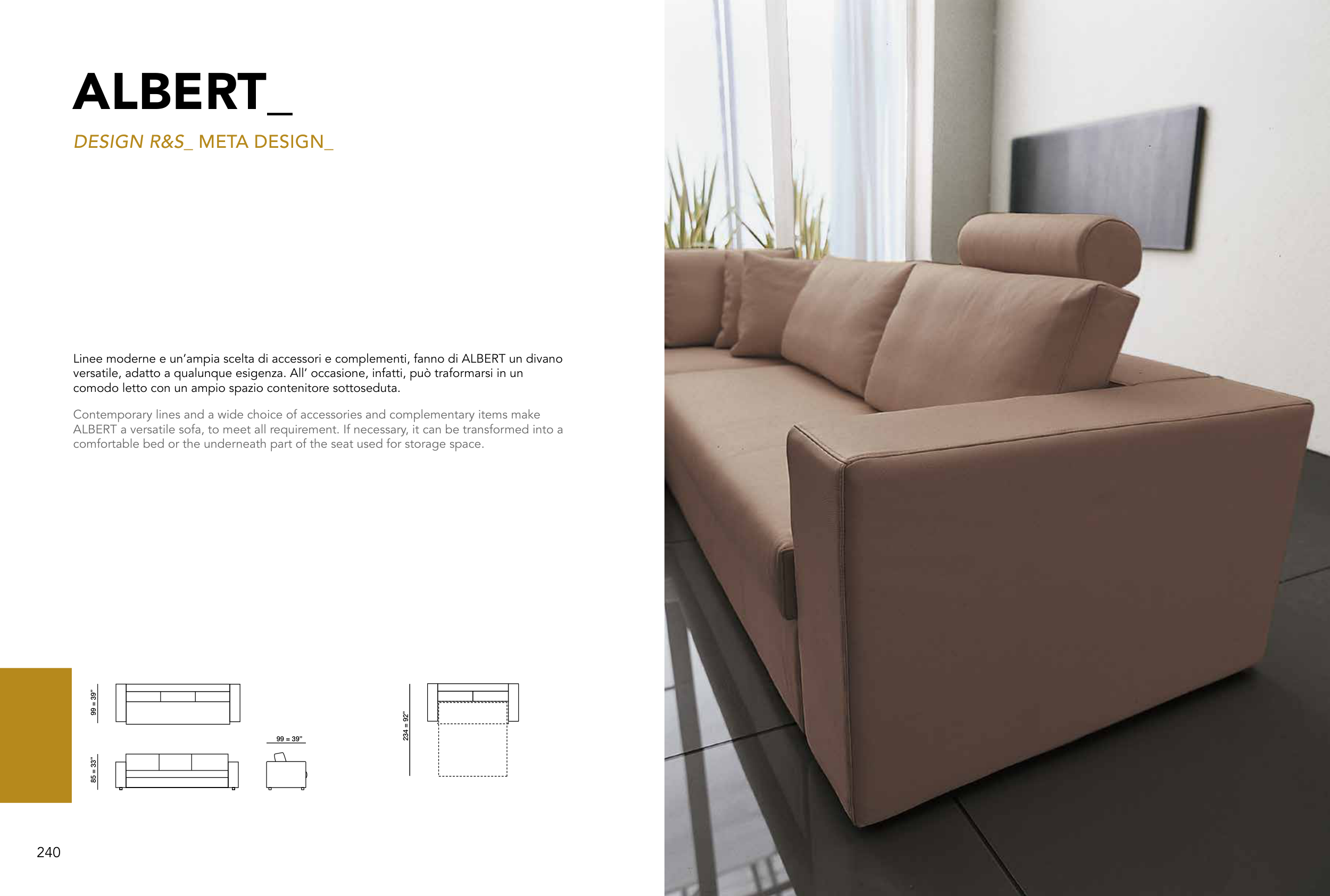 Linee moderne e un’ampia scelta di accessori e complementi, fanno di ALBERT un divano