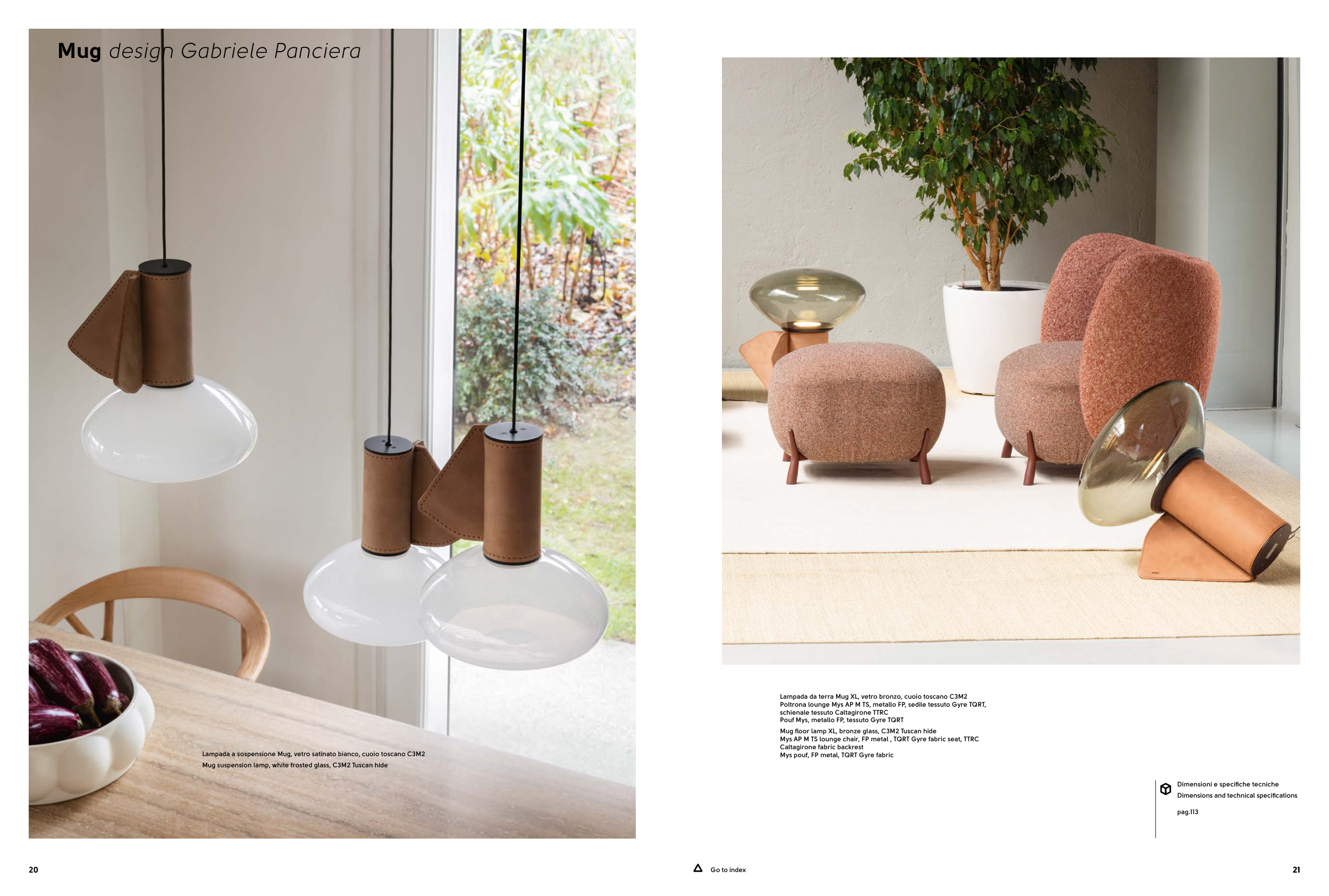 Mug suspension lamp, white frosted glass, C3M2 Tuscan hide
