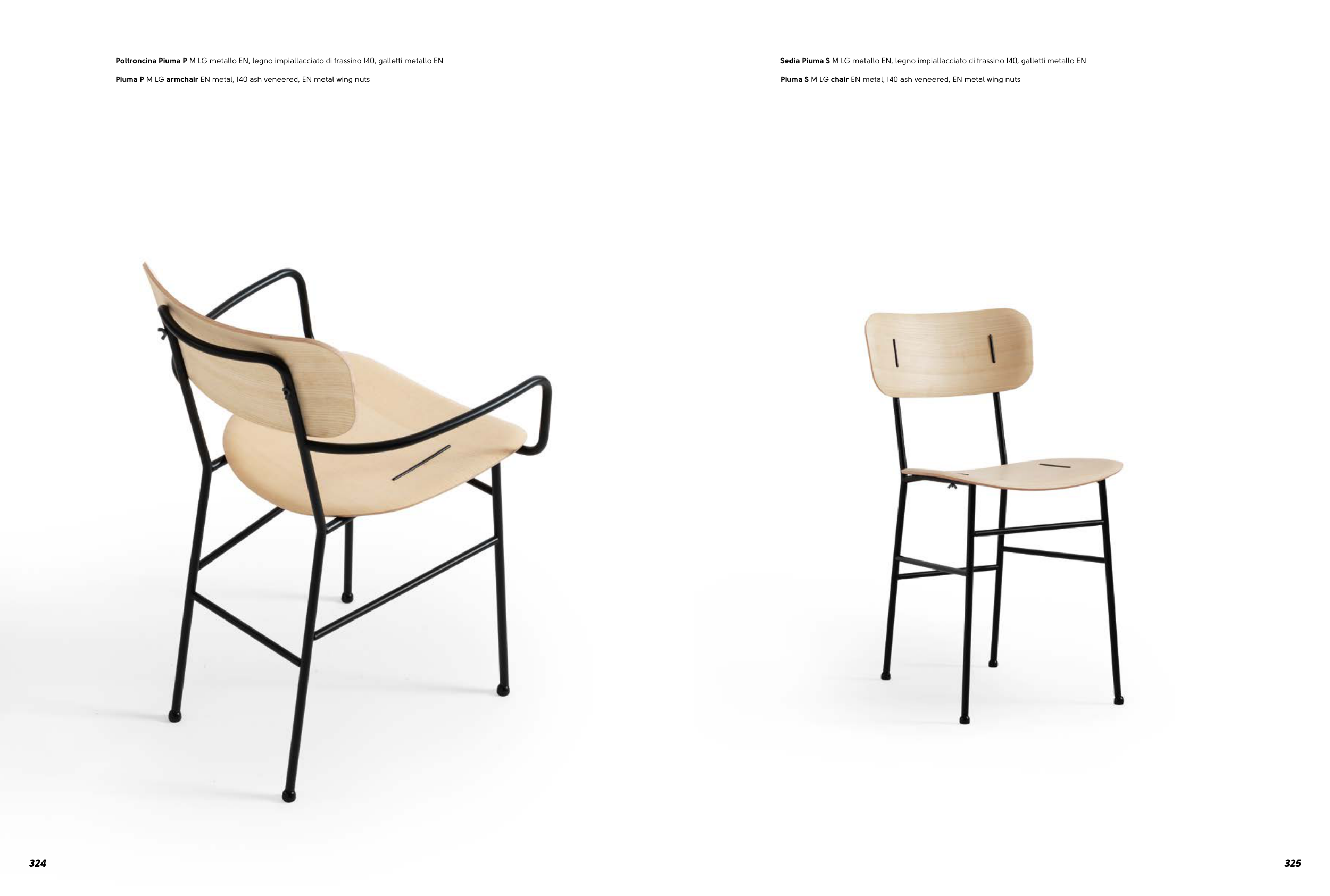 Sedia Piuma S M LG metallo EN, legno impiallacciato di frassino I40, galletti metallo EN