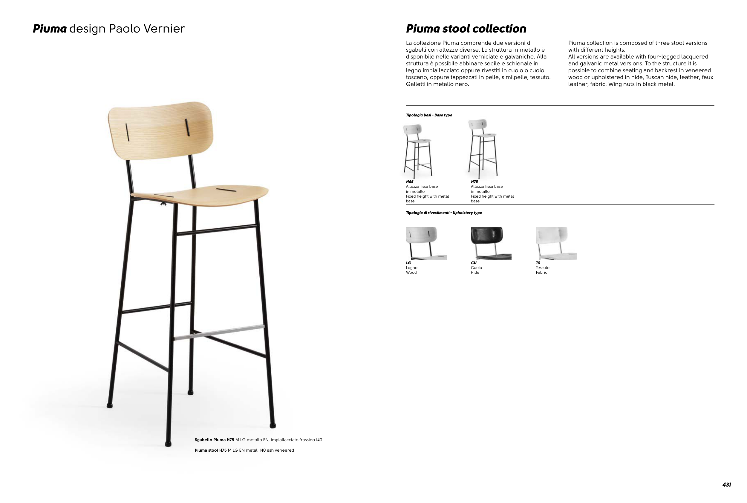 Sgabello Piuma H75 M LG metallo EN, impiallacciato frassino I40