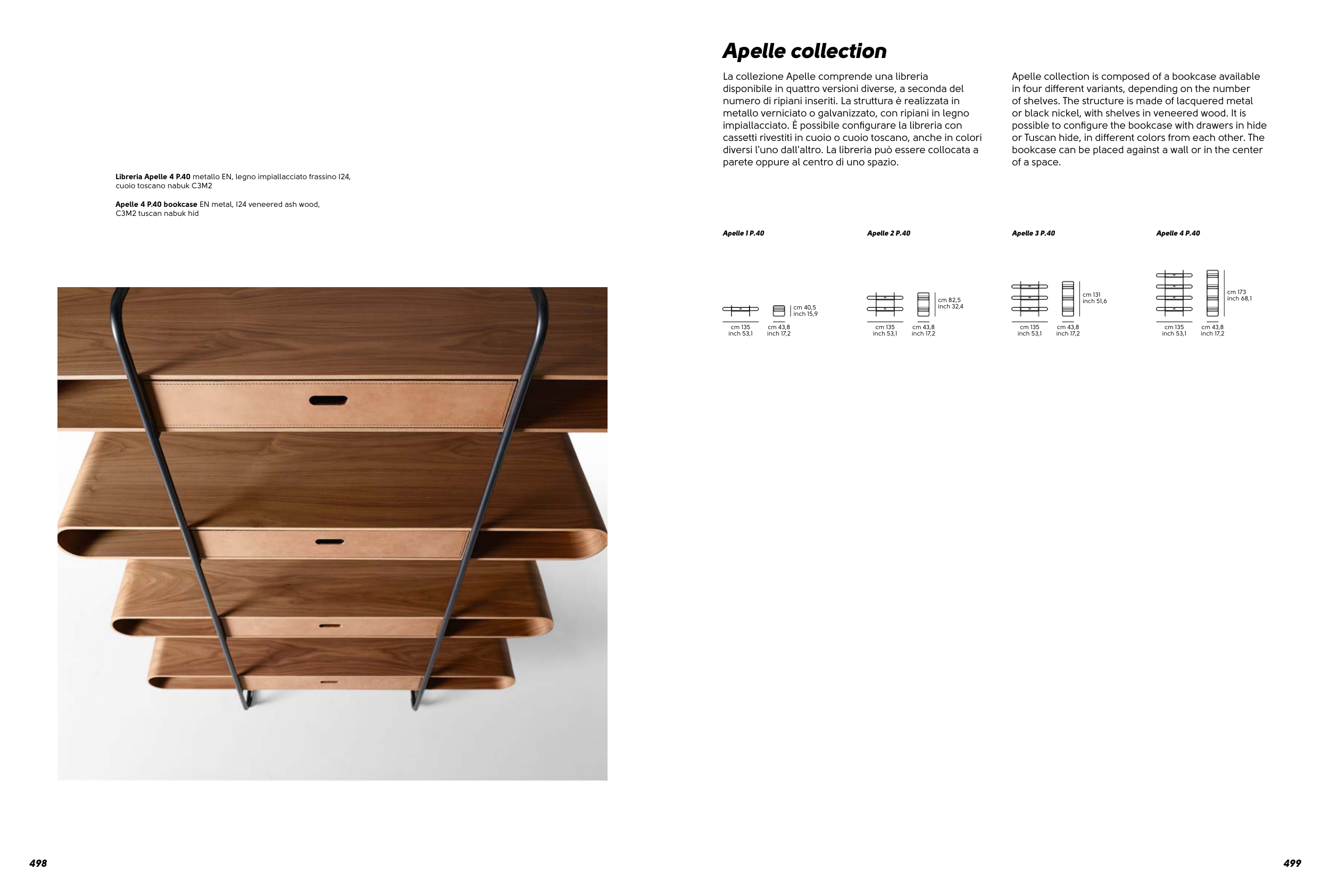 Apelle 4 P.40 bookcase EN metal, I24 veneered ash wood,