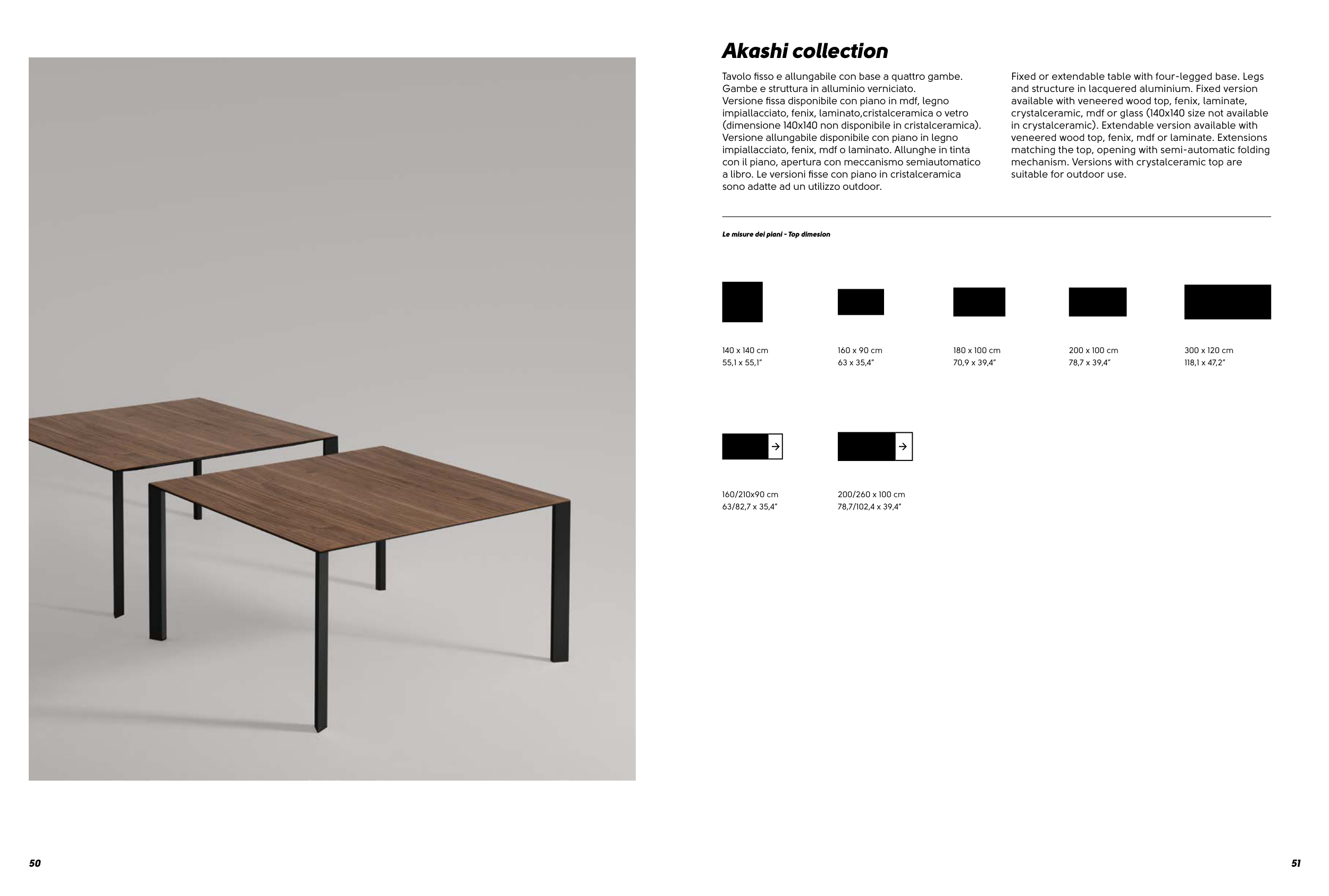 veneered wood top, fenix, mdf or laminate. Extensions