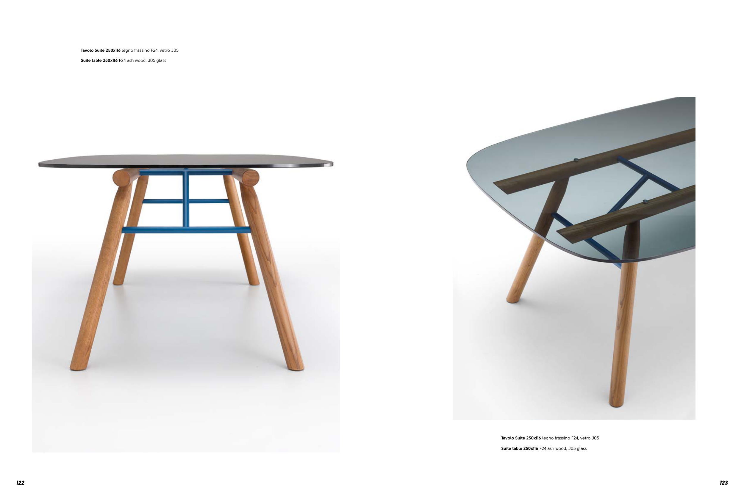 Suite table 250x116 F24 ash wood, J05 glass