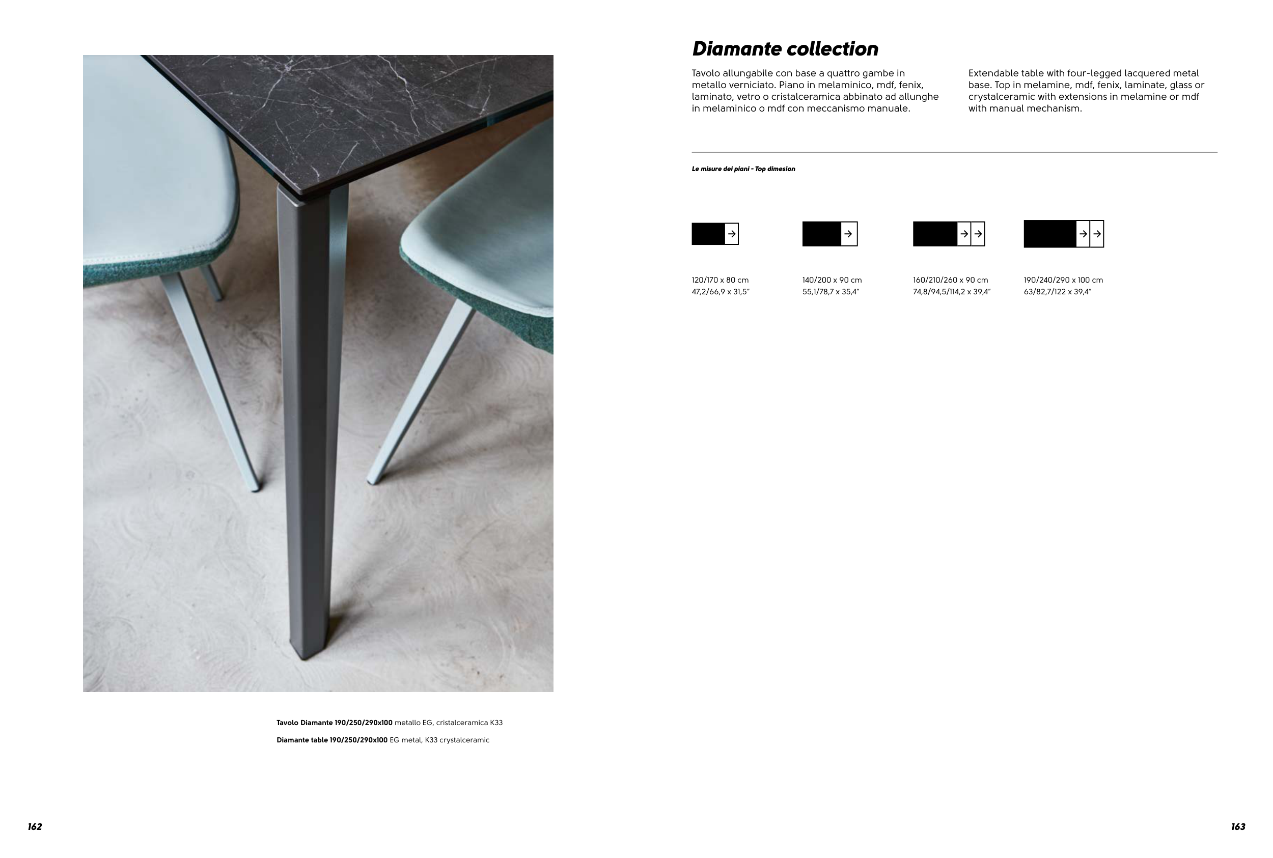 Tavolo Diamante 190/250/290x100 metallo EG, cristalceramica K33