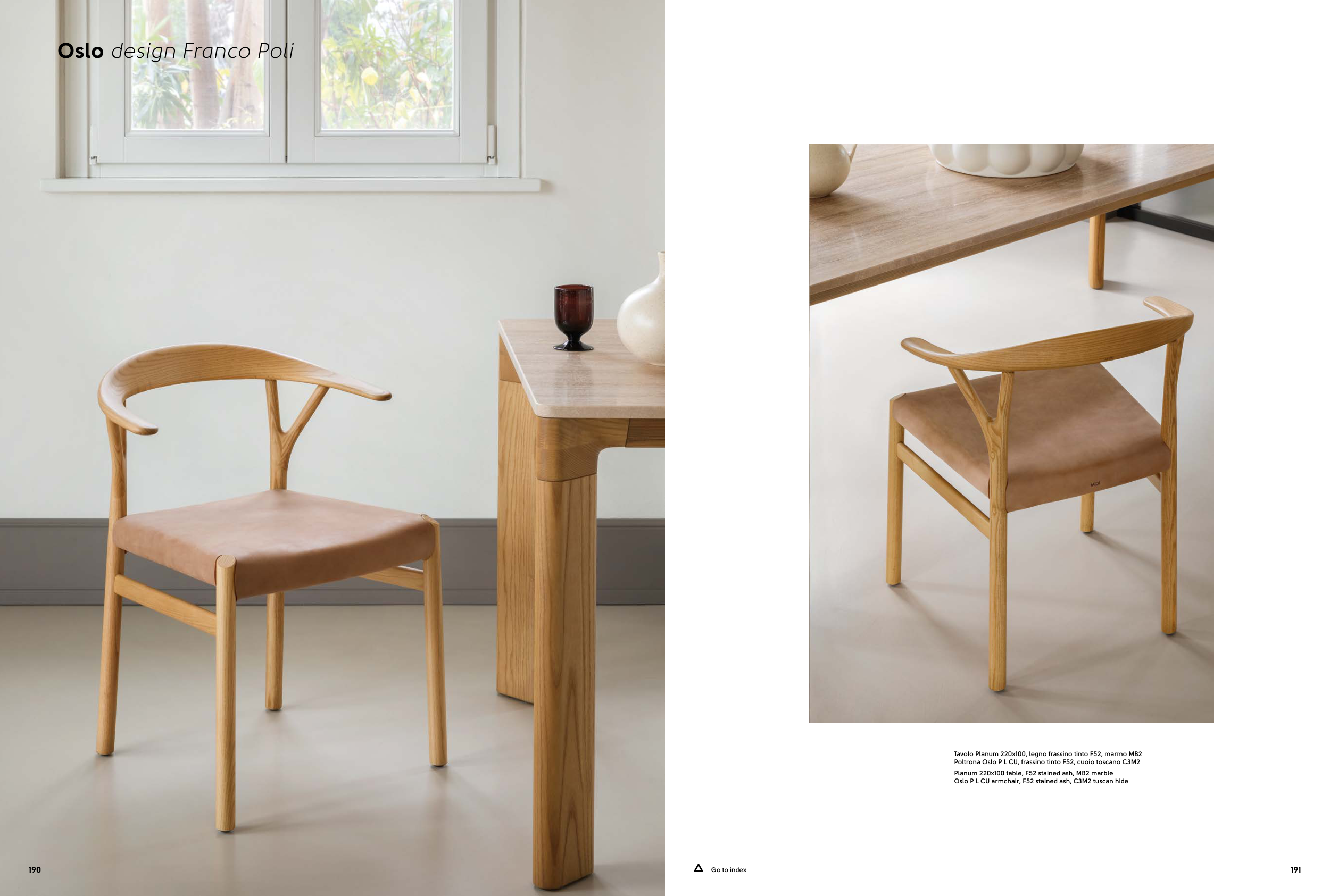 Oslo P L CU armchair, F52 stained ash, C3M2 tuscan hide