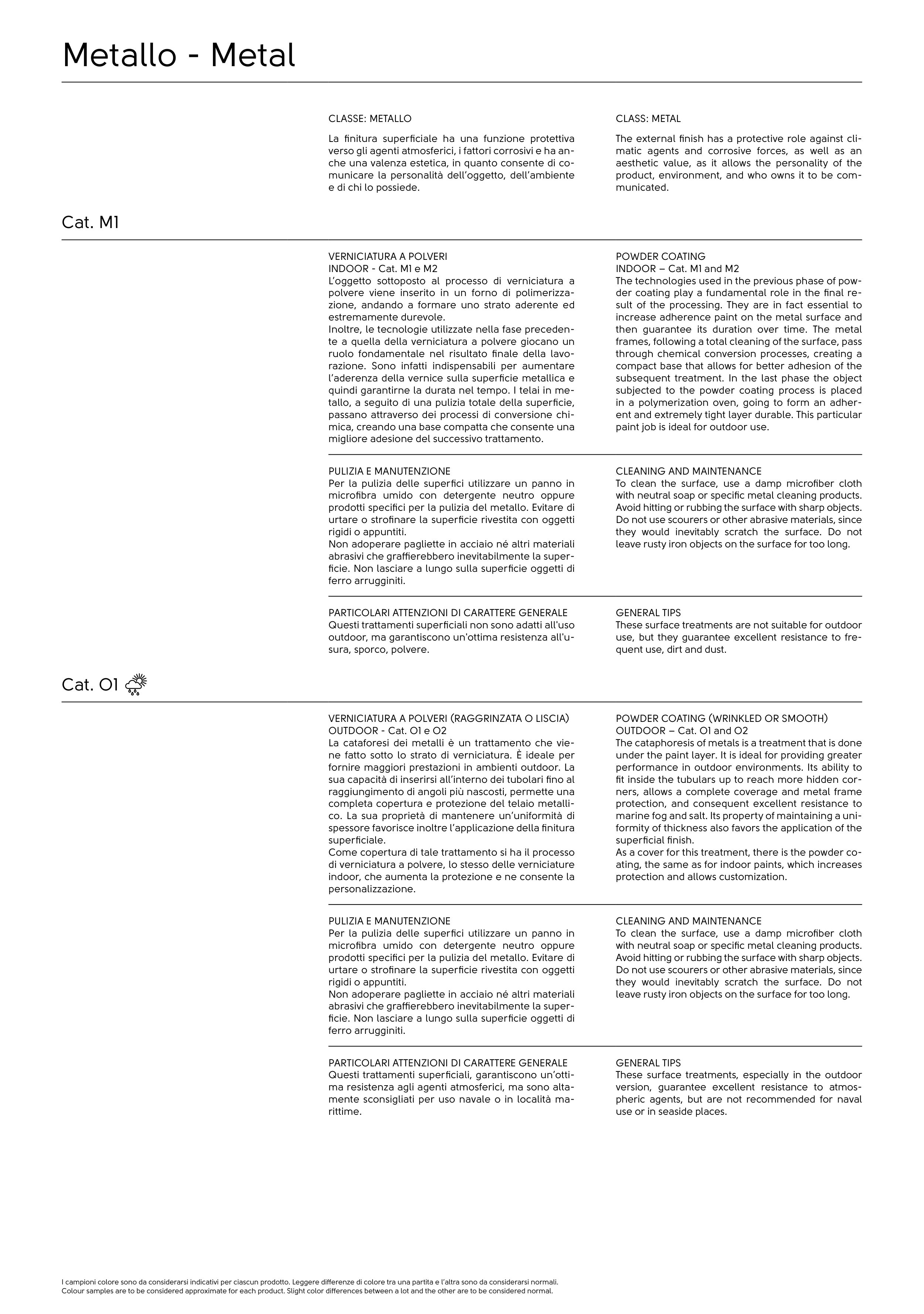 Colour samples are to be considered approximate for each product. Slight color differences between a lot and the other are to be considered normal.