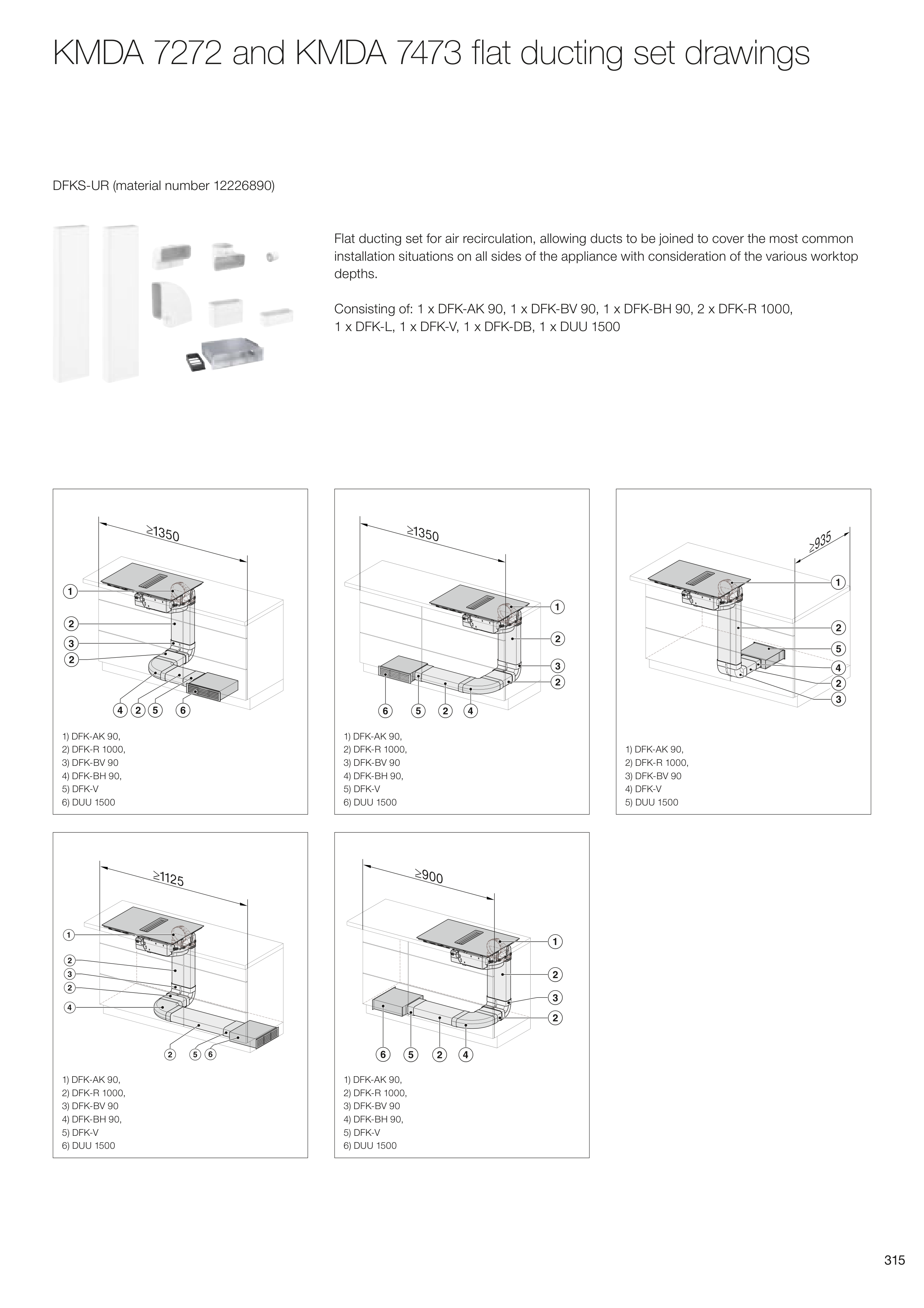 KMDA 7272 and KMDA 7473 flat ducting set drawings